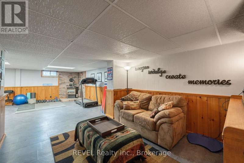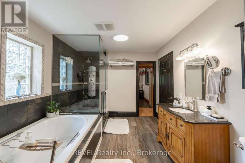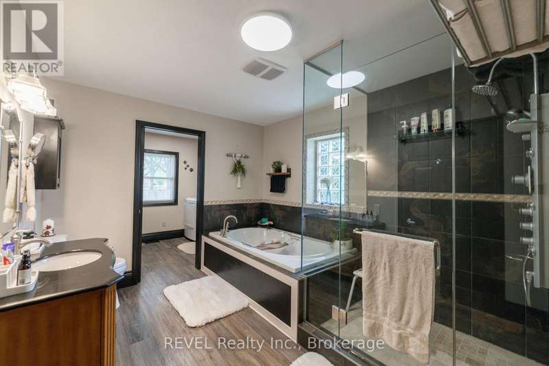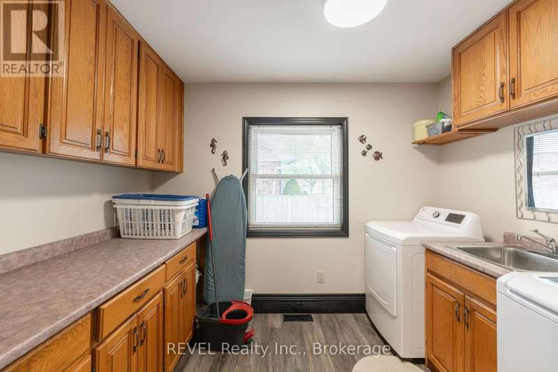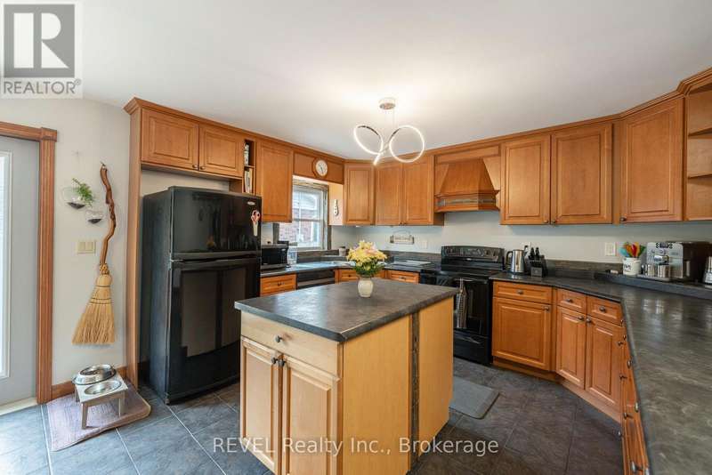 Welcome to this spacious 3+1 bedroom bungalow nestled in a prime north end St. Catharines neighbourhood! Offering 1,750 square feet of living space including a thoughtfully designed addition (2007), this home combines comfort, function, and curb appeal. The bright main floor features a generous living room with a cozy wood-burning fireplace, an updated kitchen with large island and dining area, plus a spacious 4-piece bath with soaker tub and glass shower. Convenient main floor laundry and a breezeway/mudroom connect the home to the insulated garage. The finished basement adds valuable living space with a rec room, 3-piece bath, additional bedroom, and a family room with gas fireplace. Set on a beautifully landscaped, fully fenced corner lot, the home also includes a large front porch, rear patio with gas BBQ hook-up, and two drivewaysperfect for RV or extra storage. Close to schools, parks, shopping, and more! (id:7434)