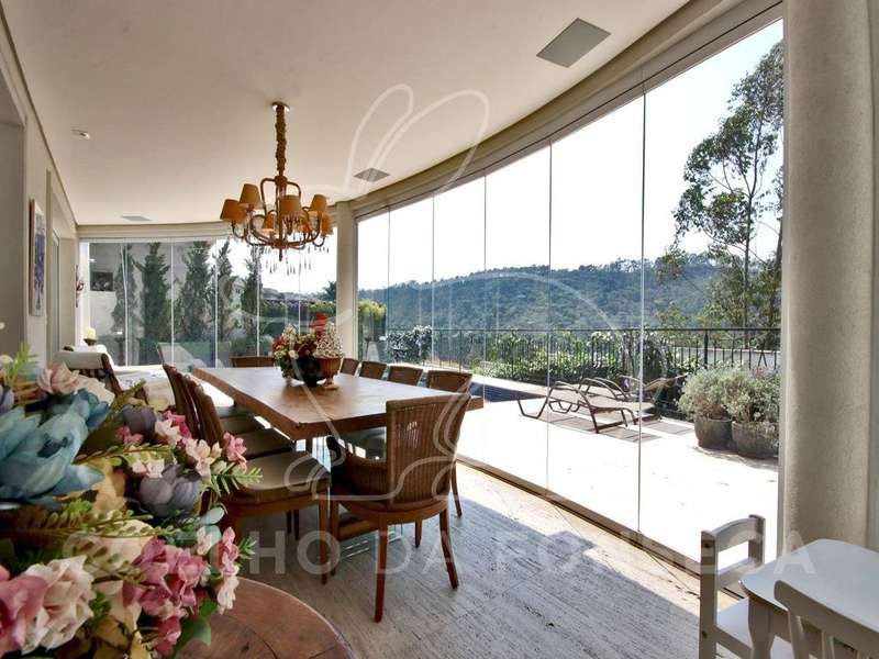 Excelente residência no condomínio Tamboré X. Final de rua sem saída, cinco amplas suítes, com elevador, acabamentos de altíssima qualidade e bom gosto. Garagem coberta para10 carros, pode ser usada como salão de festas ao lado de salão de jogos e cozinha de apoio. Varanda Gourmet com lazer integrado, bela vista para mata, localização privilegiada, condomínio com ótima infraestrutura de segurança. Tem a opção de ser vendida totalmente mobiliada, consultar valores.