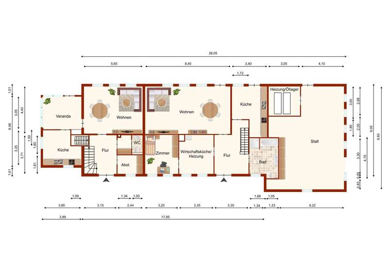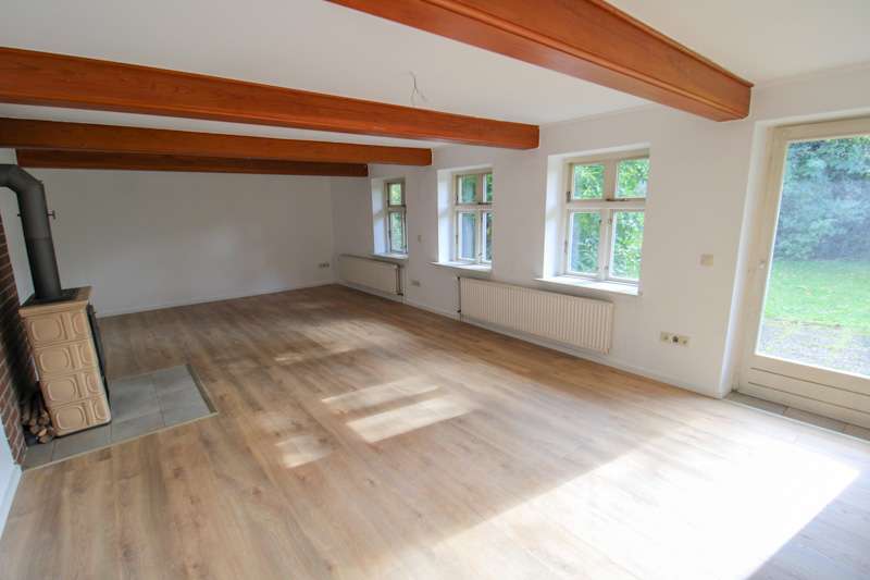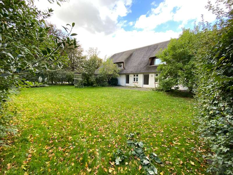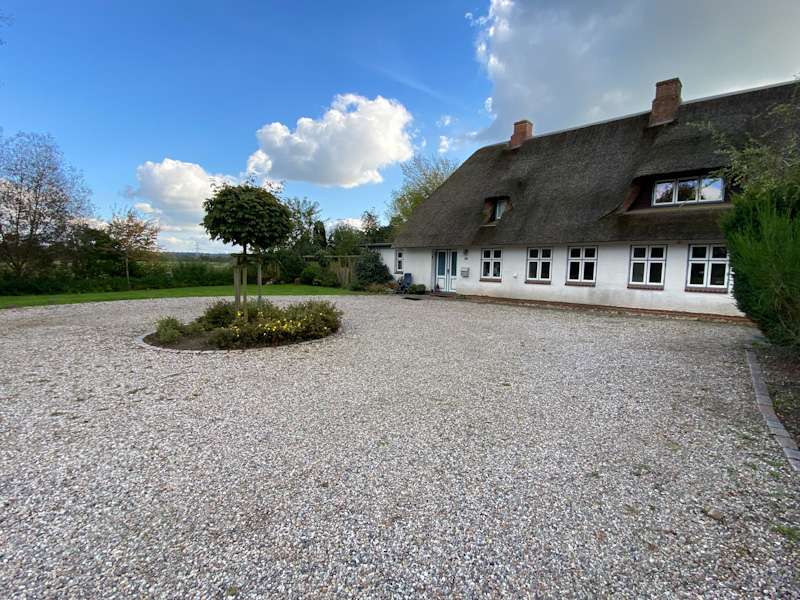The historic remaining farmhouse under thatch with plenty of space in a quiet, idyllic location was built in 1829 and is a special property in the old part of Süderlügum. The traditional L-shaped farmhouse is divided into 2 residential units and a barn. The south-facing main wing has a total of seven spacious rooms spread over two floors. The larger apartment (approx. 160 m² living space) with five spacious rooms offers plenty of room to spread out. After entering the first floor, the hallway leads to the guest WC, the kitchen with fitted kitchen, the utility room, which leads to another room, and finally the inviting living room with access to the terrace and garden. On the top floor there are three spacious south-facing bedrooms and a shower room. The inviting second apartment (approx. 90 m² living space) with separate entrance has two rooms and has been rented out for many years. The guest WC, a storage room, the living room and the kitchen with fitted kitchen can be reached from the hallway on the first floor. The sunny, light-flooded annex can be reached from both the kitchen and the living room. From here, a door leads to the terrace and the garden. The bedroom and a modern shower room with underfloor heating are located on the top floor. The low-maintenance, tree-lined garden offers perfect shelter from the wind to enjoy sunny hours on the terraces. Planning permission has been granted for the conversion of the barn into two classic ground-floor residential units. Good to know: - since 2010, heating has been provided by district heating from a biogas plant, supplemented by oil heating in case of emergency - the thatched roof was completely renewed in 2020 - A fiber optic connection is available at the property - a connection to the public gas supply would be possible Let yourself be convinced of the potential of this unique property during a personal viewing. We look forward to seeing you!