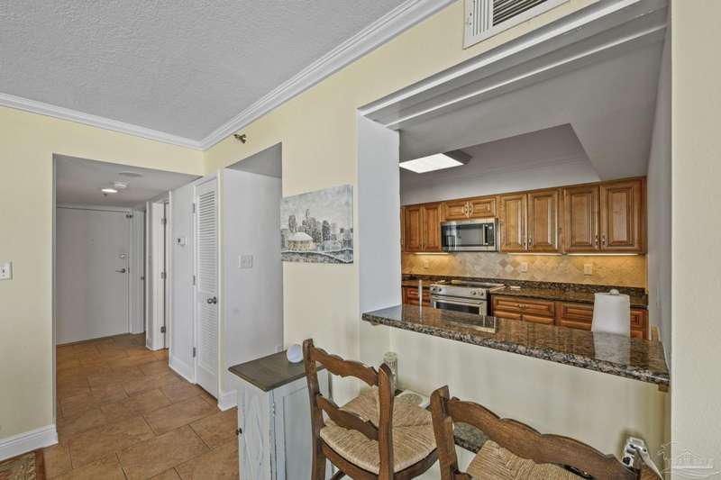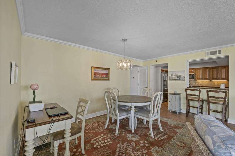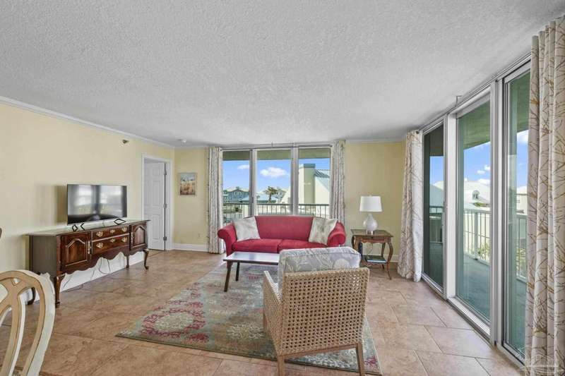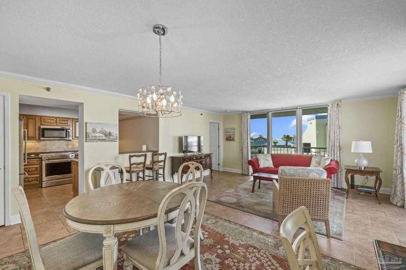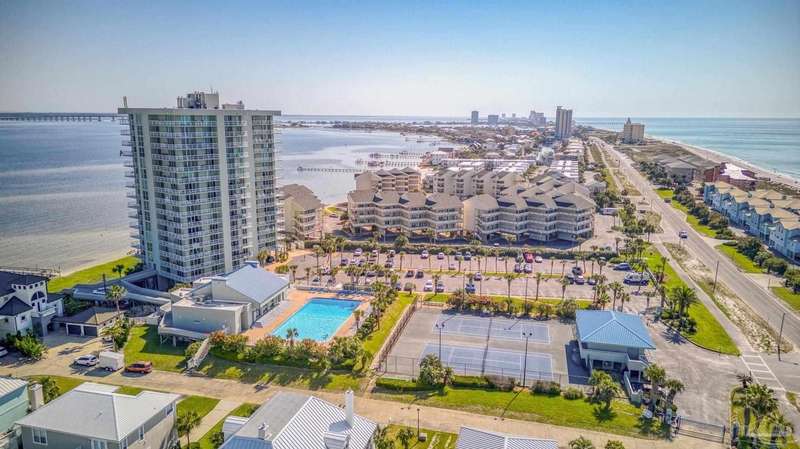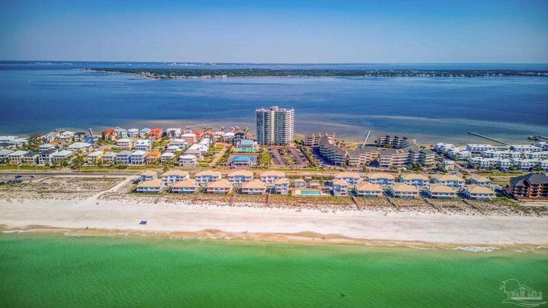 Experience the beauty of Pensacola Beach from this stunning 2-bedroom, 2-bath corner unit in the highly sought-after Tristan Towers. Located just steps from the sugar-white sands and calm waters of the Gulf, this beautifully renovated condo offers breathtaking views of Santa Rosa Sound and a glimpse of the Gulf of Mexico. Floor-to-ceiling sliding glass doors open to a spacious wrap-around balcony-perfect for enjoying coastal breezes and sunsets. This condo features a modern kitchen with granite countertops, ample cabinetry, and stainless steel appliances. The large master suite boasts bamboo wood flooring, balcony access with Gulf views, a walk-through closet with built-ins. HVAC system (2017), water heater, and in-unit washer/dryer (2019).Tristan Towers is a gated community offering exceptional amenities: a waterfront pool, tennis courts, fitness center, clubhouse, and a private fishing pier. Whether you're looking for a full-time residence, a vacation getaway, or a strong investment opportunity, this property checks all the boxes. Don't miss your chance to own a slice of paradise on Pensacola Beach!