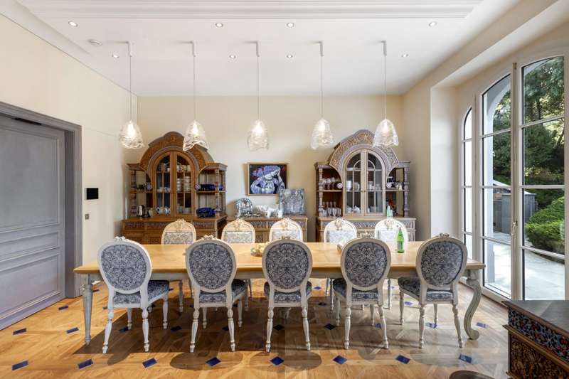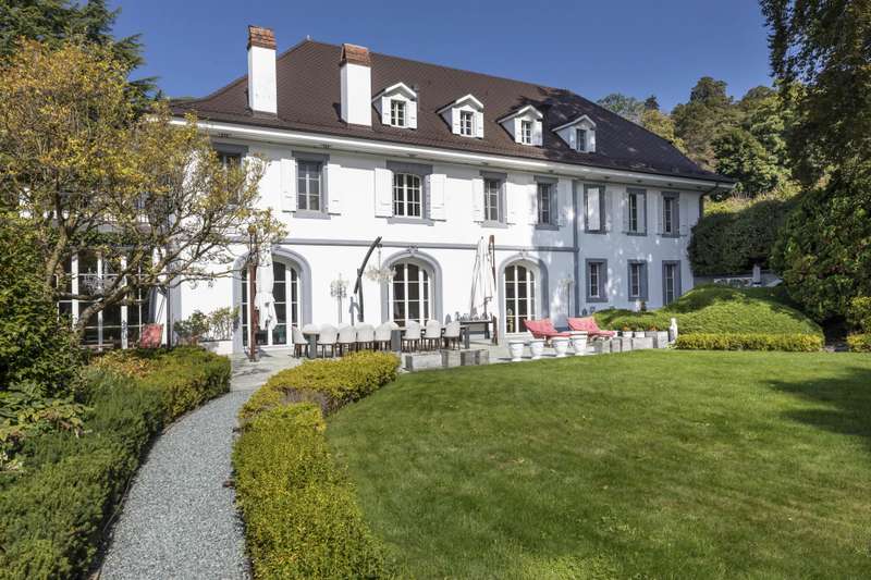 Located in a peaceful, leafy setting in Jouxtens-Mézery, this large-scale historic villa combines the charm of its period architecture with contemporary comforts. Entirely renovated in 2020 with noble materials and top-of-the-range finishes, the property offers over 1,500 m² of living space, divided between the main residence and its elegantly restored annex. Comprising 20 rooms, including vast light-filled reception rooms, several lounges, a prestigious dining room and numerous suites, this residence combines volume, refinement and modernity. The living spaces open onto a one-hectare landscaped park, a true haven of peace punctuated by mature trees and superb vistas, a pretty Japanese pavilion on the edge of a small pond, not far from a large children's playground. An orchard, vegetable garden and rose hedge invite contemplation and outdoor green thumb activities. For moments of relaxation, the property boasts a complete wellness area with swimming pool, sauna and hammam, and relaxation areas, offering a luxurious yet soothing living environment. Combining historic character, contemporary features and a privileged environment, this unique villa will appeal to lovers of authenticity and exclusivity. A rare property, designed to welcome family and guests in absolute comfort.