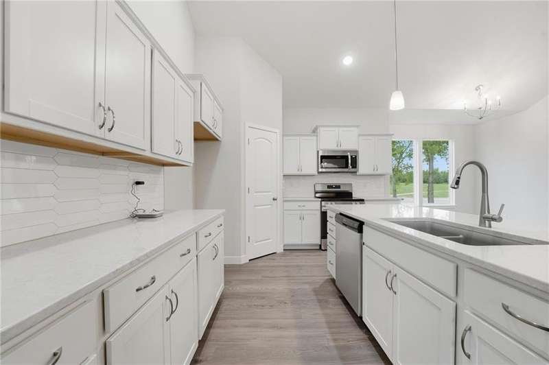 New construction by Ashlar Homes in Blue Springs! This 4-bed, 2-bath, 2,148 sq ft home delivers easy living with an open layout, bright kitchen, and a patio right off the kitchen for effortless indooroutdoor flow. Enjoy a flat backyard thats ready for play, gardening, or future projects, plus a 3-car garage for storage and convenience. Commuters will love the easy highway access, and the address feeds into the Lees Summit School District. Fresh, functional, and move-in ready!