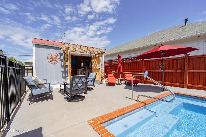 Don't miss out on a rare opportunity to own a spacious 3,163 sqft home on a generous 0.39-acre lot in the heart of Carolina Beach's residential area. Located at 607 Cape Fear Boulevard, just six blocks from the beach and boardwalk, this property offers it allcoastal charm, space to spread out, room for all your toys, and walkability to downtown shops, restaurants, and entertainment. Best of all, no flood insurance is required.Built in 1975, the home features solid craftsmanship, a warm and inviting feel, and a flexible layout ready for your personal vision. The beautifully remodeled kitchen is the center of the home, complete with granite countertops, a large center island, a gas stove, and a cozy gas fireplace. The main level includes a spacious family room, an additional living area, a formal dining room, and two bedrooms with a full and half bath.The entire second floor is dedicated to a luxurious primary suite featuring a large bedroom, four closets, a separate dressing room, a walk-in marble shower, and a classic clawfoot tub.Step outside into your own private retreat with a 34' x 14' fenced saltwater pool with gas heater, a charming pool house, and lush landscaping beneath a majestic live oak. You'll also find a greenhouse, storage shed, RV pad, enclosed outdoor shower, and a detached two-car garage with workshop. Multiple decks and lounging spaces make this home perfect for entertaining or relaxing in peace.A 500-gallon underground propane tank fuels the gas stove, fireplace, and heated saltwater pool, and also provides the capacity to support a future whole-house generator installation.This is your chance to own a truly special home in one of Carolina Beach's most vibrant and established areas. Schedule your private tour today.