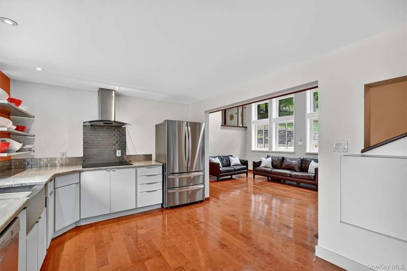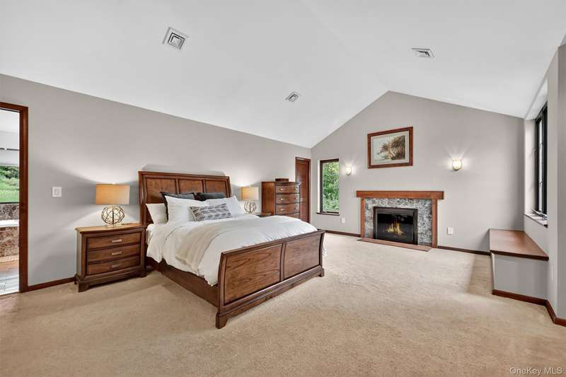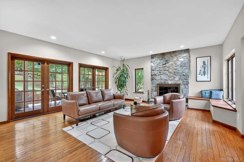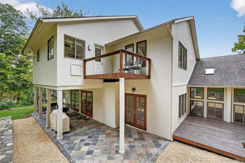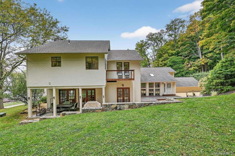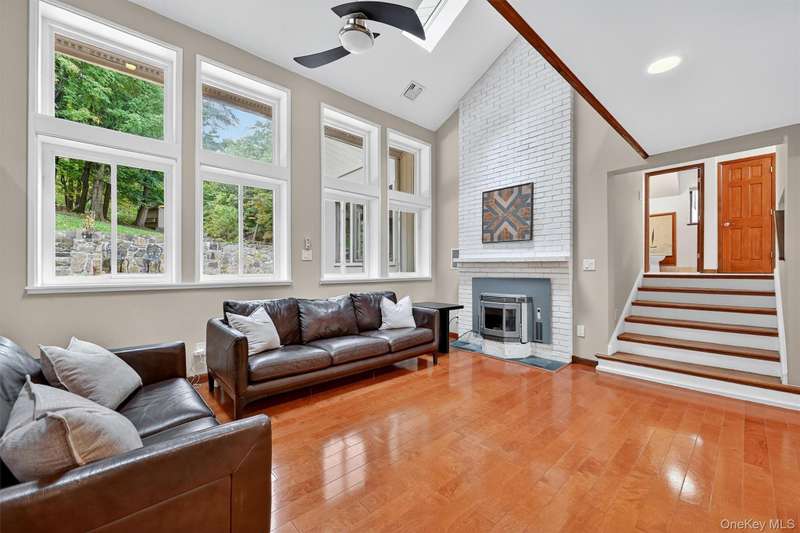 Welcome to this beautifully designed contemporary residence, where elegant stone detailing and mature landscaping offer a warm and lasting first impression. From the moment you approach, the bluestone path and thoughtful architecture hint at the sophistication within. Inside this well-maintained home, soaring ceilings, abundant natural light, and a seamless flow between living and entertaining spaces create an inviting atmosphere. The grand dining room is a showstopper, boasting dramatic double-height ceilings that make every gathering unforgettable. Just beyond, the living room features a full stone wall wood-burning fireplace, French doors opening to the backyard, and a built-in dry bar perfect for both intimate evenings and lively celebrations. The modern kitchen blends sleek design with everyday functionality, showcasing stainless steel appliances, custom Maple cabinetry, open shelving, and vibrant accents that highlight its contemporary flair. The family room continues to impress with its vaulted ceiling, skylights, and oversized windows that fill the space with natural light, while a white brick wall and pellet stove add cozy character. With four bedrooms and three-and-a-half bathrooms, the home provides abundant room for comfortable living. The primary suite is a private retreat, complete with two walk-in closets (one with a convenient washer/dryer hookup), a versatile office space, a spa-inspired en suite, and the warmth of a wood-burning fireplace. Step outside to an entertainer s dream, with multiple spaces to enjoy the outdoors: a private deck, slate patio, and lushly landscaped grounds enhanced by a brand-new retaining wall. Whether dining al fresco or simply savoring the serene surroundings, the outdoor areas create a perfect extension of the home. Combining distinctive architectural details, versatile living spaces, and inviting indoor-outdoor connections, this property offers not just a home, but a lifestyle of comfort, style, and sophistication. Set in Cornwall and located within the award-winning Cornwall School District, this home puts you moments from the best of the Hudson Valley riverfront sunsets at Donahue Memorial Park, world-class art at Storm King Art Center, and miles of trails in Black Rock Forest and the Hudson Highlands. Everyday conveniences including local shops, cafes, and seasonal farmers markets are close by. Commuters will appreciate swift access to Route 9W and the NYS Thruway, with the Salisbury Mills Cornwall Metro-North station, Stewart International Airport, West Point, and Woodbury Common just a short drive and the George Washington Bridge less than an hour away. A prime Cornwall setting that blends natural beauty, small-town charm, and easy connectivity.