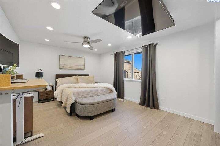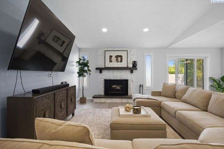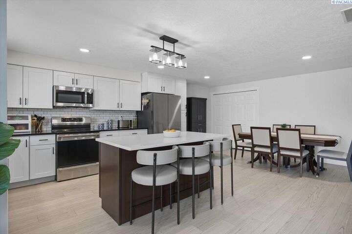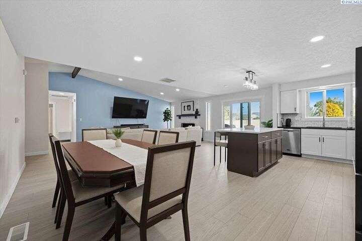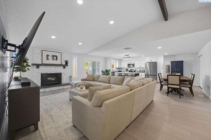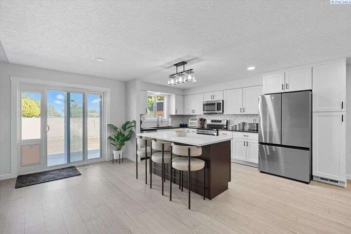 MLS# 288141 Imagine stepping out of your backyard and into the lush green expanse of Sunset Park – a tranquil meadow just behind you! With its rolling greenery and peaceful atmosphere, this park offers a serene retreat right outside your door. Plus, with gated access to walking paths, you can easily take in the natural beauty anytime you wish. Better yet, this stunning one-level home (just 1 step in!), has been completely remodeled within the past year, ensuring it’s not only beautiful but move-in ready. With sleek quartz and granite countertops, a new induction stovetop, new backsplash, and brand-new flooring, cabinets, and bathrooms, it offers a stylish and functional living space. The open-concept design enhances the flow, and the fireplace invites us to relax and cuddle with our loved ones. The backyard itself is a blank slate for anyone who wants to put their own touch on their outdoor space, whether it be a pool, yard, extended patio, fire pit area, garden, or mini golf course, whatever suits your fancy. There is also an adorable playhouse, and a shed for all your yard care needs, an EV car-charging station (level 2), and RV parking. For ultimate convenience, Costco is just a 3-minute drive, Sunset View Elementary is a quick stroll, major highway connections are within 8 minutes, and Columbia Mall is only 5 minutes from home – perfect for anyone who desires comfort and quick access to everyday amenities. Property has been pre-inspected, and is available upon request.