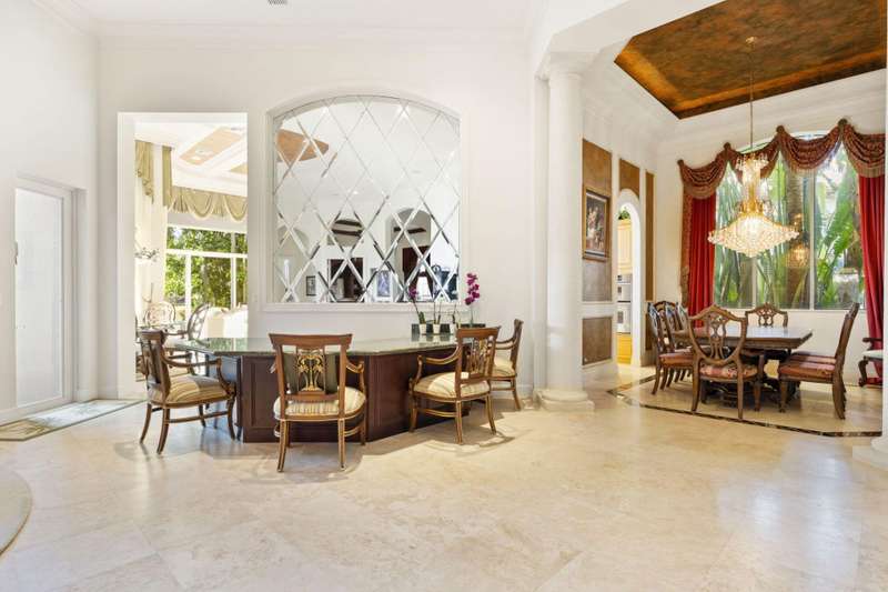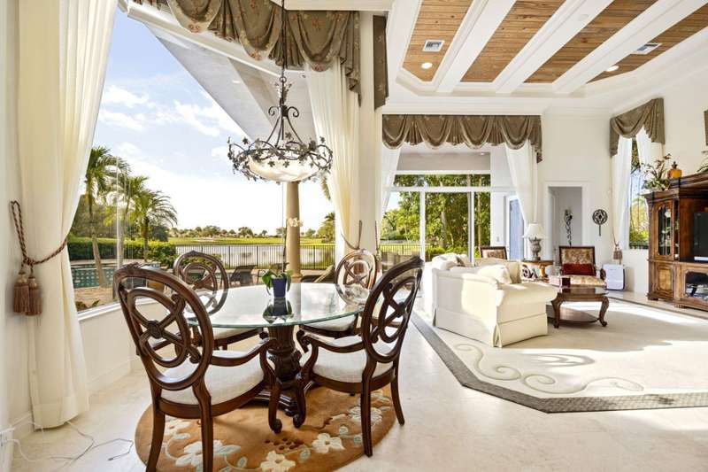 One of the most stunning water Golf Views with western exposure, nestled in Quantera at Mirasol Country Club, GOLF MEMBERSHIP available. This one level masterpiece is walking distance to the club, featuring tranquil sunsets and exceptional privacy. Offering 3,812 square feet of living space, this home offers 3 bdrm, 3 ba, and office on one level providing ample room for ... comfortable living. The exceptional views seen from the main living areas in the home are surround by lush tropical landscaping, creating a secluded sanctuary. Upon entry, the soaring ceiling and expansive windows in the spacious Living room offer and abundance of natural light. Throughout the home, exquisite details abound, including coffered ceilings, a full wet bar, and a well-appointed office. The kitchen is a delight for culinary enthusiasts, with a gas range, a generous walk-in pantry, wrap-around countertops, central island, open to the family room, with breathtaking views. The primary suite is conveniently located with picturesque views of the expansive lake, golf course and unbelievable sunsets. The VIP guest suites are situated for privacy. The spacious outdoor paradise with newly resurfaced pool, spa and summer kitchen is perfect for relaxing and entertaining. The AC units have been replaced recently. Mirasol Country Club is one of Palm Beach Gardens most coveted country clubs, boasting a 75,000 square foot clubhouse with multiple indoor and outdoor dining venues, a full-service spa, a state-of-the-art fitness center, a dedicated kids clubhouse, tennis and pickleball courts, an Olympic-sized pool, kids pool, additional secluded pool and two championship golf courses. This vibrant community offers an array of social activities, special interest clubs and events, ensuring a dynamic lifestyle for its residents.
