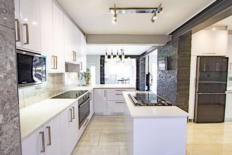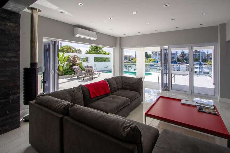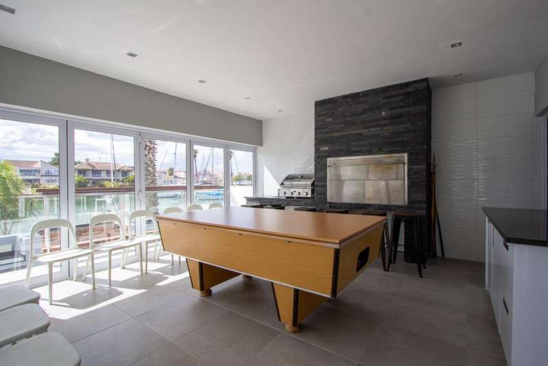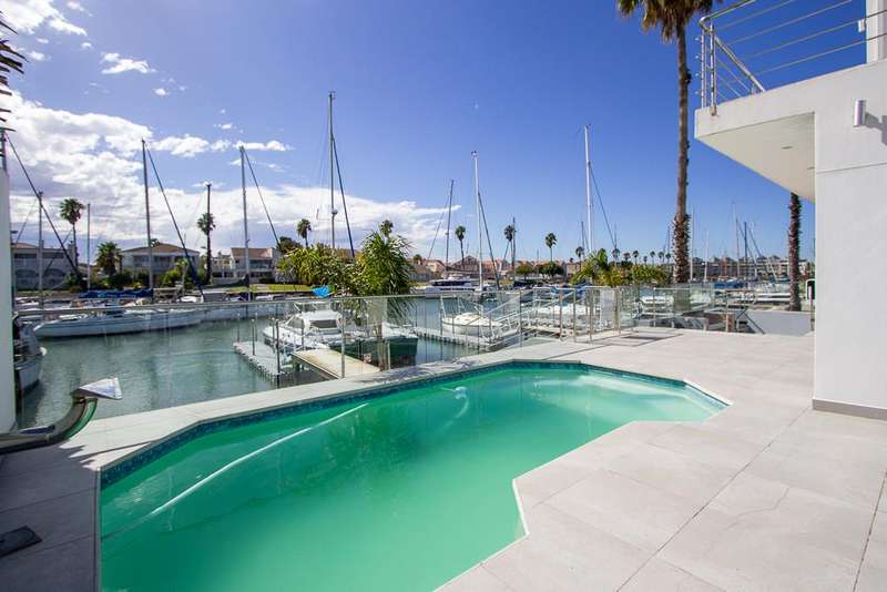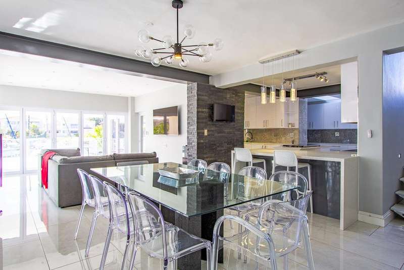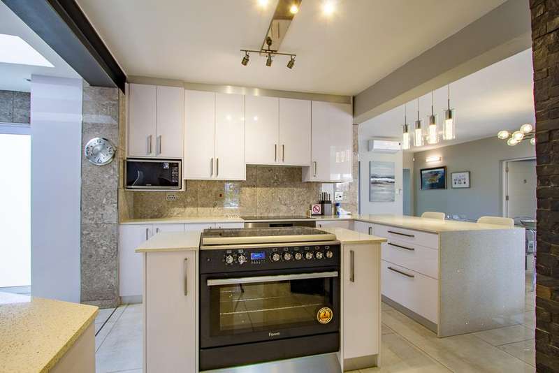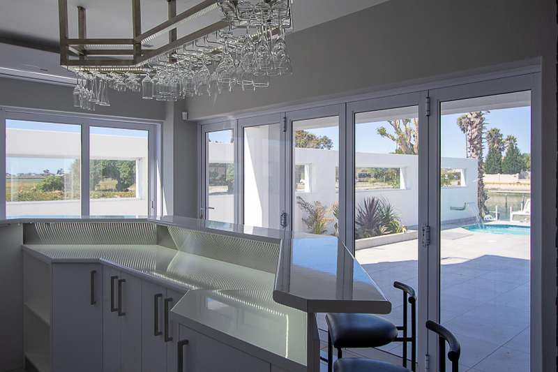 Amazing uninterrupted views and the perfect location. Renovated 3 years ago, the house is now modern, with quality and style in all finishes and detail. Apart from the 270-degree views, the open plan living areas and light throughout the house will immediately catch your eye. The living area, dining, bar, pool and braai room all opens with stacking doors to merge the inside and outside. The effect is something you have to experience and cannot be explained by words only. The ?Çÿto Dream of?ÇÖ kitchen, has space for all appliances and moves seamlessly into the dining area and lounge. Quartz counter tops are fitted throughout and included is a double door refrigerator, microwave and dishwasher. Downstairs is one bedroom with ensuite bathroom and fitted with an aircon. Upstairs are 4 bedrooms, each with own ensuite. Each bedroom has a balcony and the master bedroom has a walk-in closet. All bedrooms are tiled, has an air conditioner, fixed headboards and curtains. The double garage has direct access to the house and with automated doors. There is space for extra washing machines and a wash basin is fitted. A large private jetty, swimming pool, fire pit and an inhouse elevator is all part of the property. This is an extra-ordinary house and fit for the person looking for something special. A house with a difference, offering space and views and entertainment areas. Make an appointment for viewing.