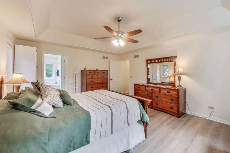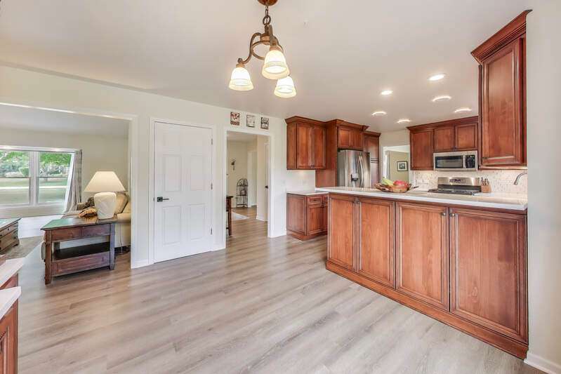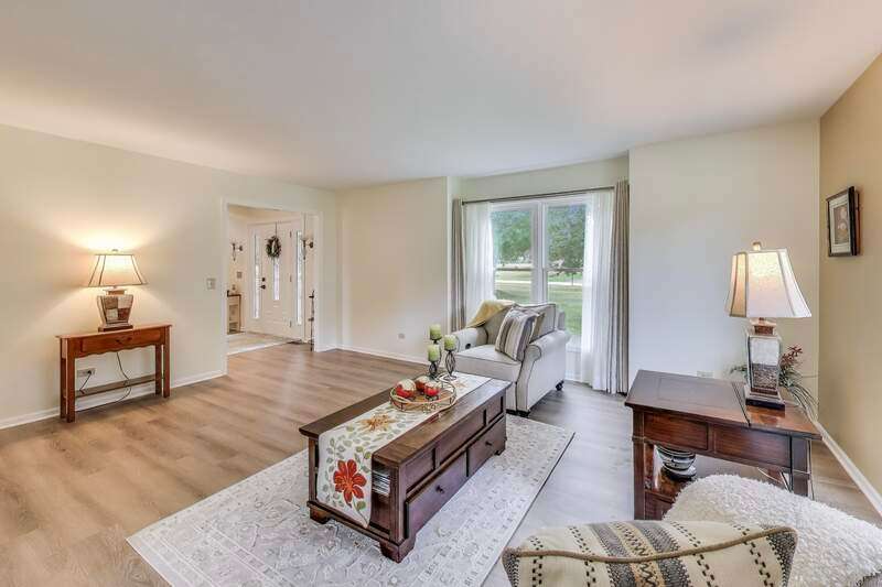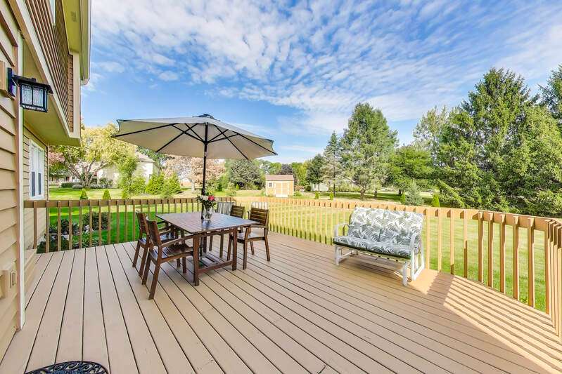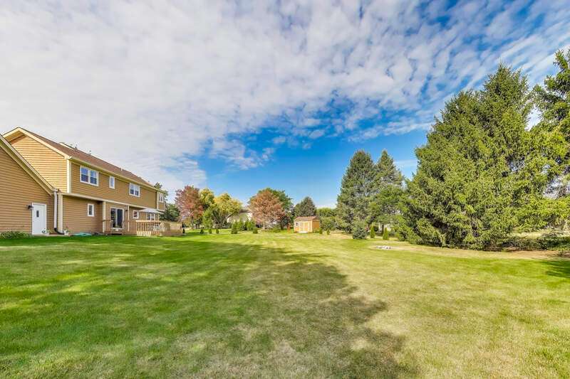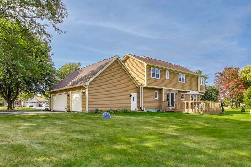 Gorgeous 2-Story in Orchard Bluff Estates! Set on a beautifully landscaped 1-acre corner lot in one of Spring Grove's premier neighborhoods, this stunning 3,600+ sq. ft. home blends timeless design with modern updates and thoughtful details throughout. Step inside to a foyer that opens to the freshly painted living and dining rooms with brand-new flooring. The heart of the home is the newly refreshed kitchen featuring cherry cabinetry, quartz countertops, glass tile backsplash, stainless steel appliances, under-cabinet lighting, and a sunny breakfast area with sliders to the expansive deck. The spacious family room impresses with soaring ceilings and a Heat-N-Glo sealed gas fireplace insert framed by an updated mantle. Upstairs, a versatile loft and three bedrooms offer plenty of flexibility. The luxurious primary suite boasts a tray ceiling, walk-in closet, and a beautifully updated bath with quartz dual vanities, Kohler fixtures, jetted tub, custom shower, and direct ceiling heat for added comfort. The hall bath has also been refreshed with modern finishes and upgraded lighting. The finished basement expands the living space with a large family room, a den ideal as a 4th bedroom, a full bath, craft room, and generous storage. The oversized 3+ car garage is fully finished with drywall, bright lighting, new openers, keyless entries, attic storage, and a new side entry door. Outdoors, enjoy a large deck with accent lighting, a brick paver walkway, and a spacious shed with electricity. All of this in a friendly neighborhood setting-just steps to the park, and minutes from Lake Geneva, Metra, Wilmot Mountain, and Chain O'Lakes State Park. Major updates inside & out: New windows & front entry door (2022), New roof & A/C (2017), Well pump (2025), Luxury vinyl plank flooring with limestone (2021), All new kitchen appliances (2022), New washer & dryer (2022), Whole-house Kinetico water softener (applied membranes filtration added 2022), Reverse osmosis system for refrigerator & ice (2023), Oversized gutters w/ leaf filter screens (2022), Exterior siding, soffit, fascia professionally stained (2022), Professionally landscaped with pines, arborvitaes, perennials & lighting (2022-2023). This Orchard Bluff Estates gem is the perfect place to call home and move in ready. Don't miss your chance-schedule a showing today!