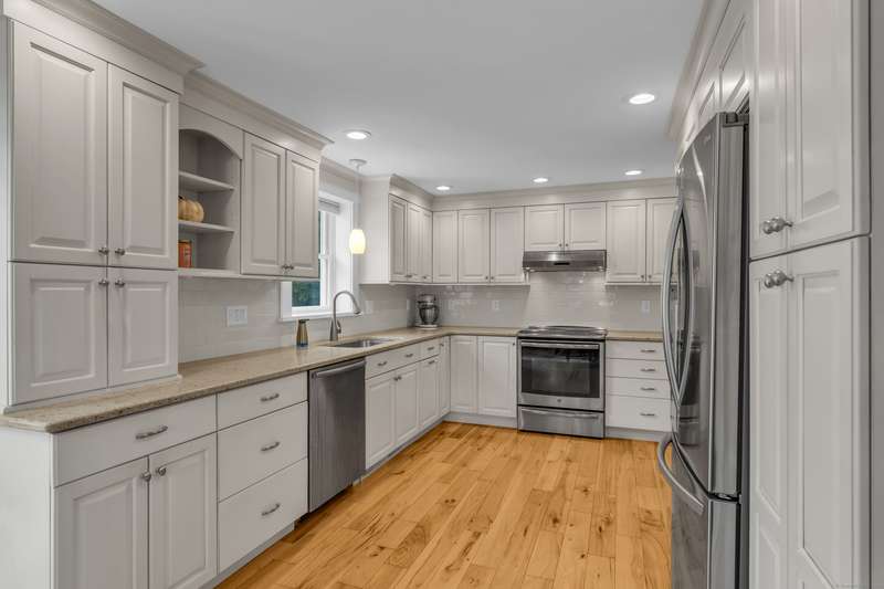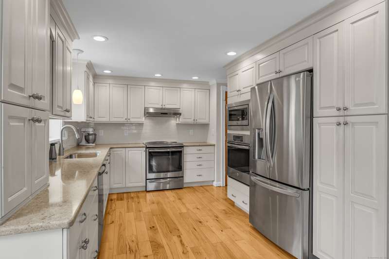This beautifully maintained 3-bedroom, 2-bath split-level offers style, comfort, and plenty of space inside and out. The inviting living room features a cozy pellet stove and hardwood floors that flow throughout. The heart of the home is the fully updated kitchen, complete with stainless steel appliances, an induction cooktop, and sleek quartz countertops-perfect for everyday living and entertaining. Step outside to your own backyard retreat with an above-ground pool and expansive multi-level deck, ideal for summer fun. The lower level offers a full bath, mudroom, and direct access to the attached 2-car garage, adding both convenience and functionality. Even better-roof and septic system were replaced in 2021, giving you peace of mind for years to come.