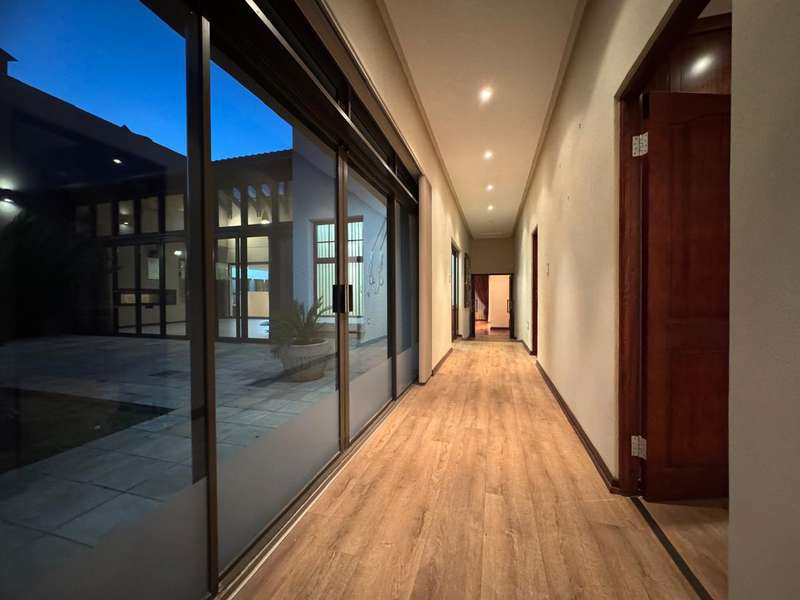 ***EXCLUSIVE MANDATE*** Welcome to this beautifully designed 500 sqm luxury residence, offering expansive open-plan living with sleek modern finishes and attention to detail throughout. This home is the perfect blend of style, comfort, and functionality—ideal for the discerning homeowner. The luxurious main bedroom suite features a generous dressing room and an abundance of built-in cupboards, along with a beautifully appointed en-suite bathroom. Two additional bedrooms, both with en-suite bathrooms and dedicated writing nooks, provide comfort and privacy for family or guests. An adaptable large study, currently used as a work-from-home space, can easily be converted into a fourth en-suite bedroom, offering flexibility to suit your lifestyle needs. This home is packed with premium extras, including: A dedicated Biltong Room Sewing Room for creative pursuits Built-in Bar for entertaining Indoor and Outdoor Built-in Braai Areas—perfect for year-round gatherings A Chef’s Kitchen with granite countertops, gas hob, and ample storage Separate Scullery and Laundry Room The entertainment room, featuring stack-away glass doors, opens to breathtaking natural views and creates a seamless flow between indoor and outdoor living. Additional highlights include: Triple Garage with additional workspace Electrical wiring designed to support an emergency power supply This elegant and thoughtfully designed home offers space, functionality, and luxury in one exceptional package. Contact us today to arrange a private viewing and experience all that this remarkable property has to offer.