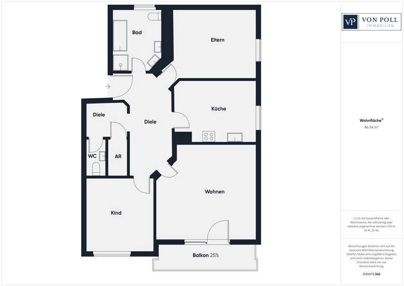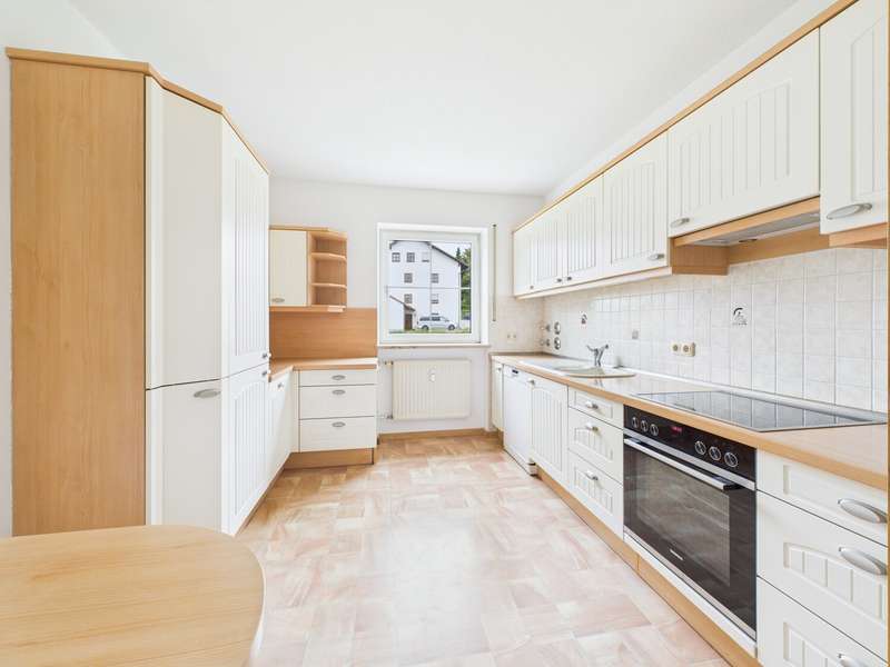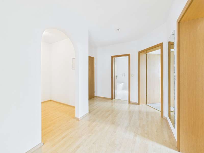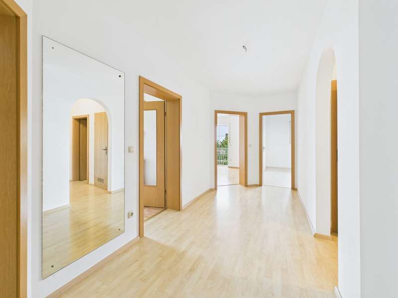 This spacious apartment is located in a very well-kept apartment building with only six residential units built in 1996. With approx. 87 m² of living space, it impresses with a well thought-out room layout and a pleasant living ambience. Upon entering the apartment, you enter the inviting hallway, from which all rooms are accessible. The spacious hallway area offers space for a wardrobe and is fitted with a decorative mirror. Directly adjacent is a practical storage room, which provides additional storage space. The bright living room has a high-quality wooden parquet floor and opens onto the sunny west-facing balcony - ideal for relaxing in the evenings. Next door is the children's room, which is also flooded with light thanks to its west-facing orientation. The large bedroom offers plenty of space and is carpeted. The kitchen is equipped with a well-maintained fitted kitchen, which is included in the purchase price. A dining table can also be comfortably placed here - a place for socializing with family or friends. The apartment has a spacious cellar compartment, which offers plenty of storage space for everyday items. The washing machine connection is located in the communal cellar. A parking space can be purchased for an additional €8,000. This apartment combines a well-thought-out room concept with an attractive location in a quiet, well-kept six-party building. Whether for couples, small families or as an investment - a home with a feel-good character awaits you here. You are welcome to take the 360-degree tour to get a first impression of the property: https://tour.giraffe360.com/19d90872e8dc473c9028d90930bd6a78 See for yourself the possibilities this apartment offers during an on-site viewing and arrange a viewing appointment with us.