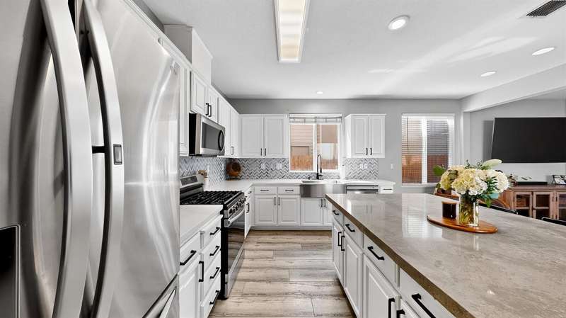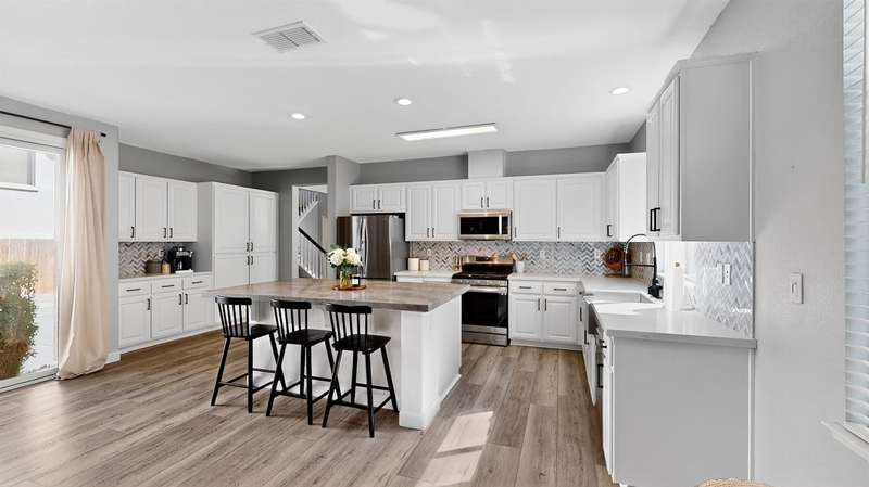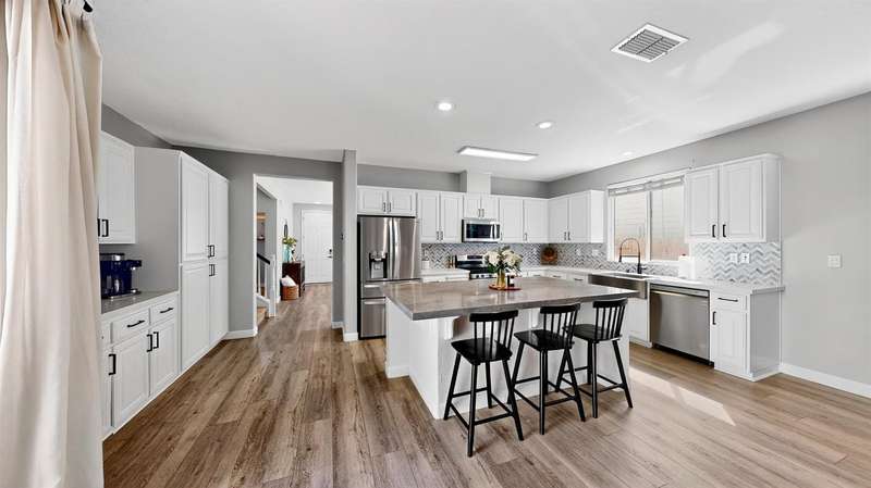 Stylishly Updated Home with Modern Finishes & Move-In Ready Appeal Step into this beautifully updated home featuring a remodeled kitchen with a striking herringbone backsplash, modern farmhouse sink, freshly painted cabinets, and elegant neutral Quartz countertops. A thoughtful extension of cabinets and counter space creates the perfect setup for any cook, while contemporary gray flooring flows throughout the first floor, tying the space together with a modern touch. Upstairs, you'll find four well-sized bedrooms plus a convenient laundry room, right where you need it. The property is move-in ready with no improvements needed just unpack and enjoy! Additional highlights include a 220-volt outlet for RV or EV charging, an oversized shed for tools and toys, and a long, wide driveway with easy access to the kitchen ideal for unloading groceries with ease. Clean, stylish, and priced to sell quickly, this home won't last long. Be sure to explore the 3D Matterport tour, review the disclosures, and schedule your showing today before it's gone!