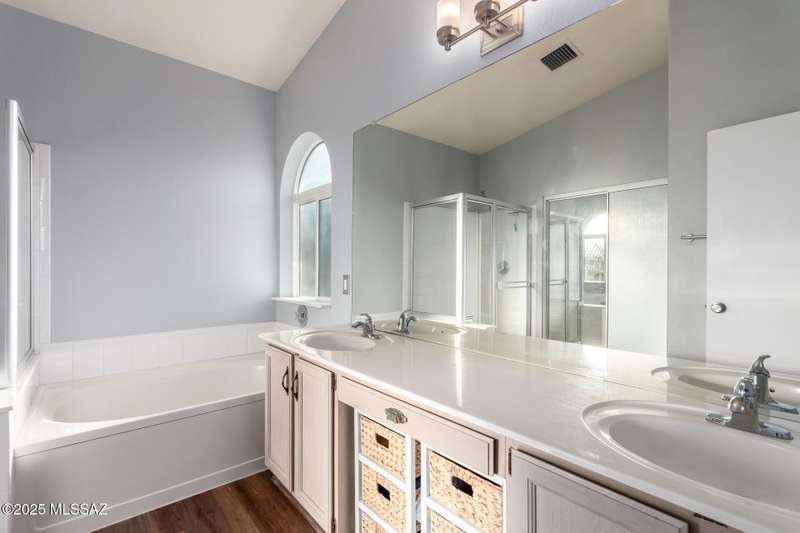 BACK ON THE MARKET!!!! Beautifully maintained 3 bedroom, 2 bathroom charming home in popular Continental Ranch BACK after being withdrawn in July. Zillow does not reflect true days on the market. It's right ACROSS FROM A PARK! Vaulted ceilings & a spacious great room create an open, airy feel. Pride of ownership shows-immaculately clean & move-in-ready. Roof features STATE-OF-THE-ART UNDERLAYMENT WITH 30 YEAR WARRANTY ON TILE. Home includes a WHOLE-HOUSE WATER FILTRATION SYSTEM with softener & carbon filters, plus reverse osmosis at kitchen sink, In-ground irrigation w/ automatic timer & 3 stunning mature saguaro cacti. Community offers 2 POOLS, REC CENTER, PARKS & TRAILS. Close to shopping, dining, schools, and I-10. Don't miss this gem!!