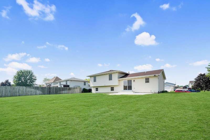 Move right in to this well-maintained 4-bed and 2-bath tri-level home. Enter into the front room with tiled entryway which leads to the large kitchen with plenty of cabinets, tile flooring, gorgeous backsplash and sliding glass doors for walkout to the new cement patio (2024), great for grilling. Continuing up to the second level are three bedrooms and a full-size bathroom with a modern light fixture and large vanity. Stay dry during rain and snow by entering the house through the attached 2.5 car garage which leads to the lower level of the home and features a huge living room, a 3/4 bath with custom tile flooring and upscale lighting, another bedroom (or home office) and laundry room with new shelves (2025). New roof in 2020 and water heater in 2024. Plenty of space in the back yard for a storage shed, garden and room to play and enjoy the outdoors! Shopping, restaurants, bike trails and entertainment nearby. Easy access to expressways for Chicago commutes. This home was loved and is ready for you to make it yours. Sellers will consider offering a home warranty. Schedule your showing now and enjoy your new home for the summer!