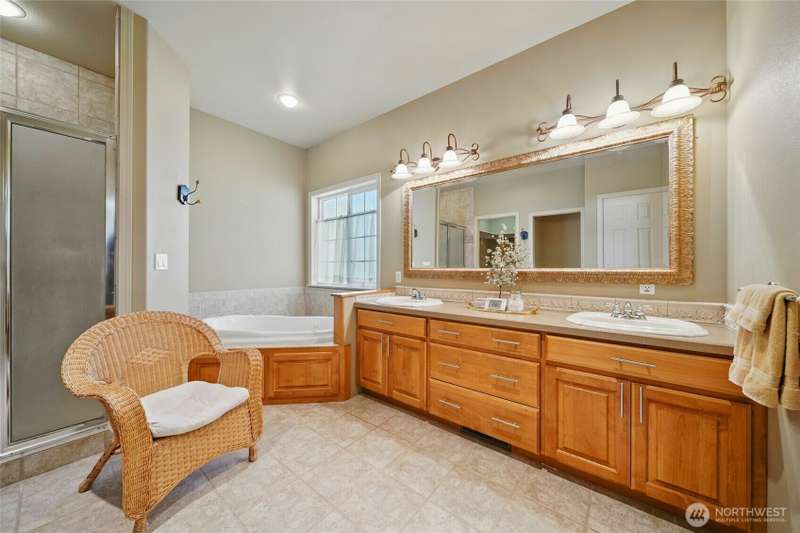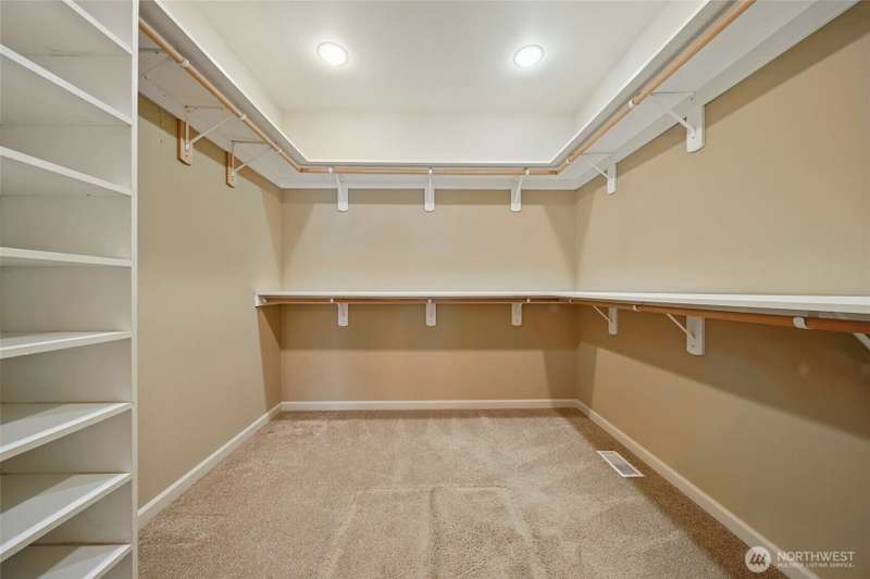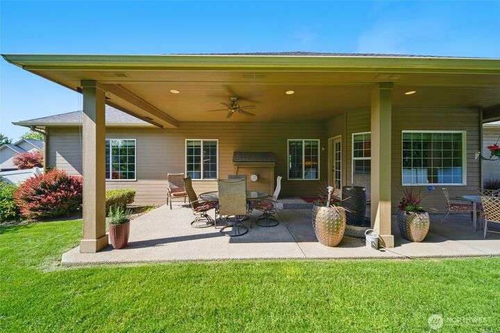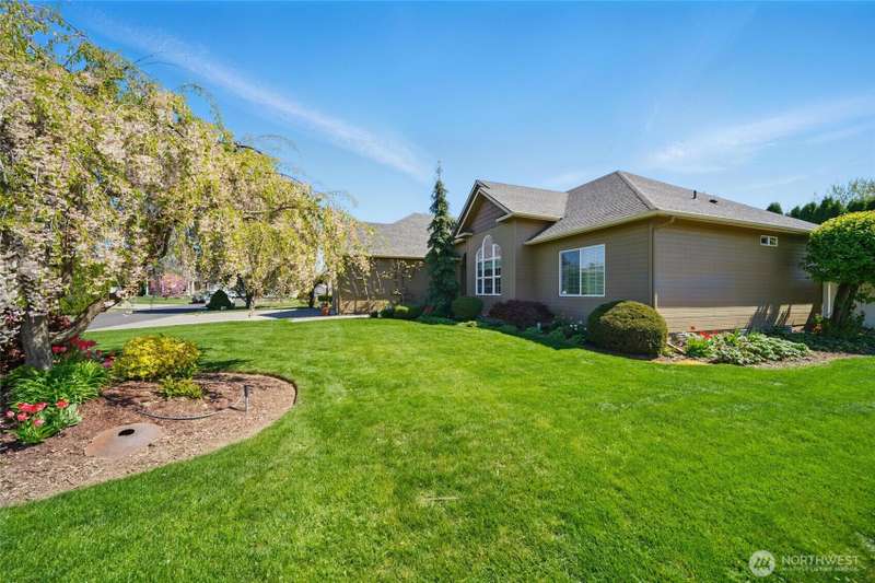 QUIET setting and GREAT NEIGHBORHOOD, close to shopping and Lyons Park. Bedrooms split, and one BR could be an office, music room, or BR. Amenities include a jetted tub for soaking, ceiling fans, a central Vac. System, a forced air heat pump with a gas backup, a 3-car garage with abundant storage, a 220V plug-in garage on the east side, and a beautiful gas FP. The home features a new LG fridge (2025), an eating bar, LARGE PANTRY, formal dining, and an informal eating area. Great, fully fenced back yard with a raised garden bed, pet potential, and low maintenance & manicured with an UG timed sprinklers. LG primary ensuite w/lg. walk-in closet. All of the HIGH CEILINGS add to the charm. You need to see it for yourself!