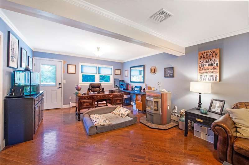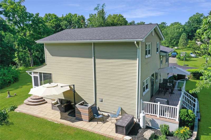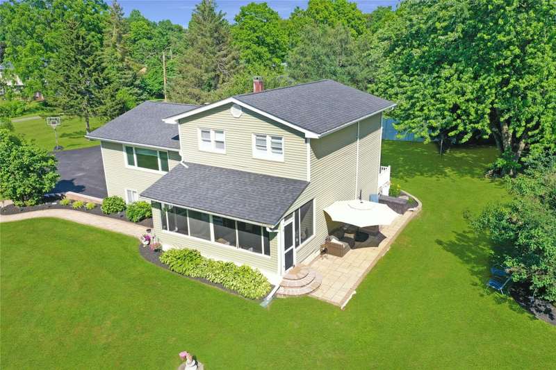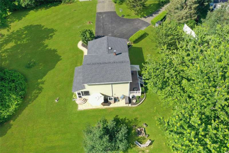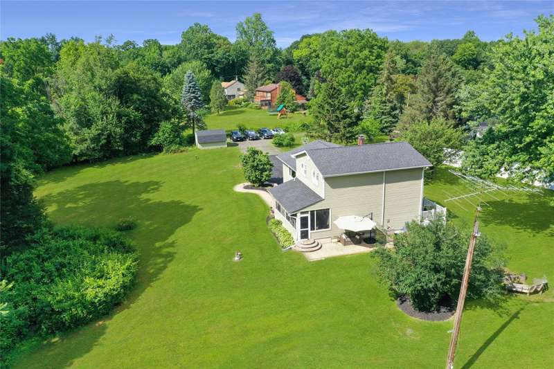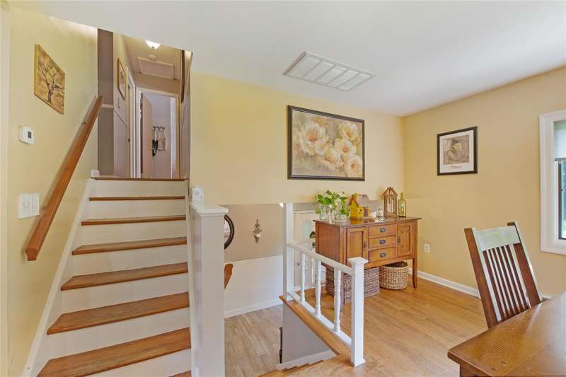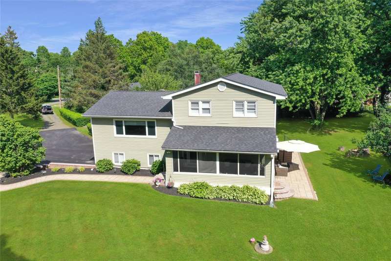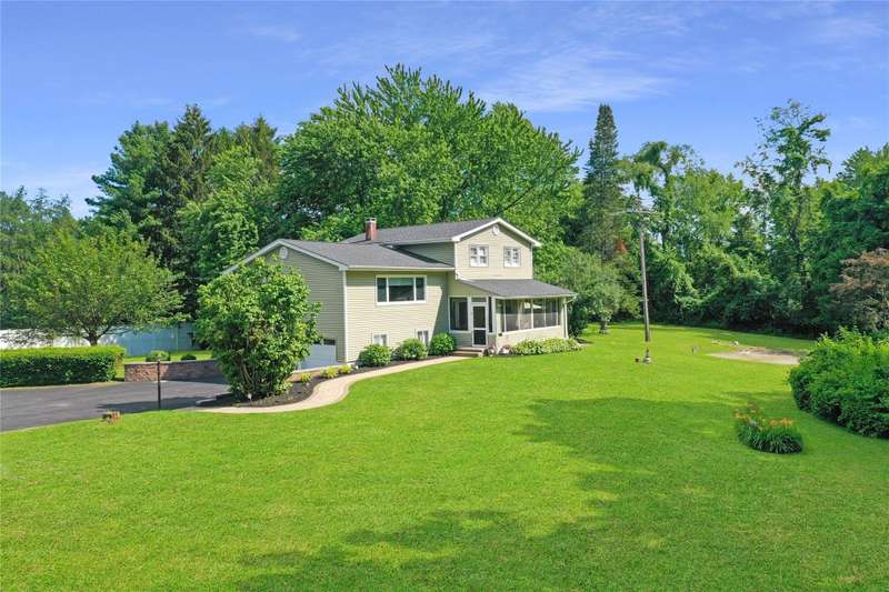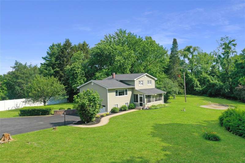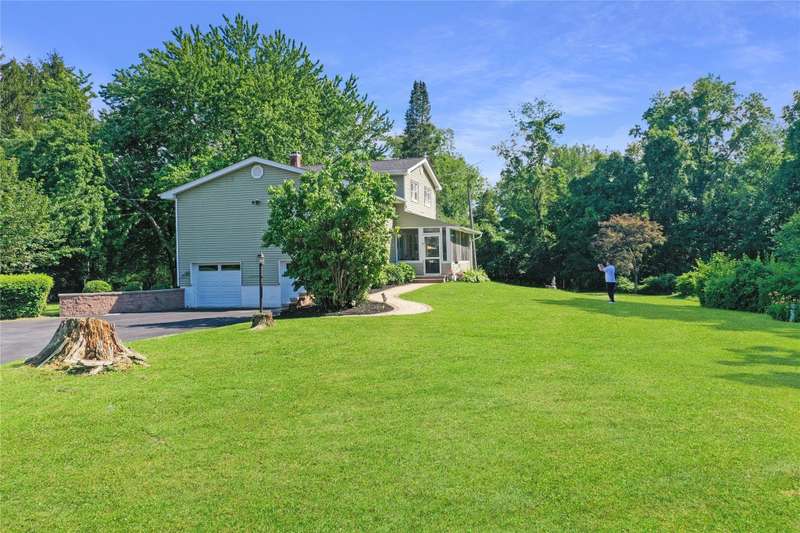 Discover this beautifully renovated 3 level living split-level residence located on a cul-de-sac and nestled on almost 3 acres of secluded, lush landscape. and beautiful paver walkways. The thoughtfully updated interior boasts modern finishes, an open concept living area, and ample natural light that creates a warm and inviting atmosphere. The spacious kitchen features sleek granite countertops, contemporary cabinetry, and stainless-steel appliances, perfect for entertaining and family gatherings. Upstairs, you'll find comfortable bedrooms with generous closet space and a stylish, fully renovated bathroom. The lower level offers versatile spaces ideal for a home office, media room, or additional recreational area as well as a modern bath laundry room combination. Step outside to enjoy the tranquility of your private retreat — expansive yard, mature trees, and peaceful surroundings provide the perfect backdrop for outdoor activities, gardening, or simply relaxing in nature as well as family bar-b-q gatherings. This home combines modern updates with the privacy you deserve. , offering the ideal escape while still being conveniently accessible to local amenities. Don't miss your chance to own this exceptional property!