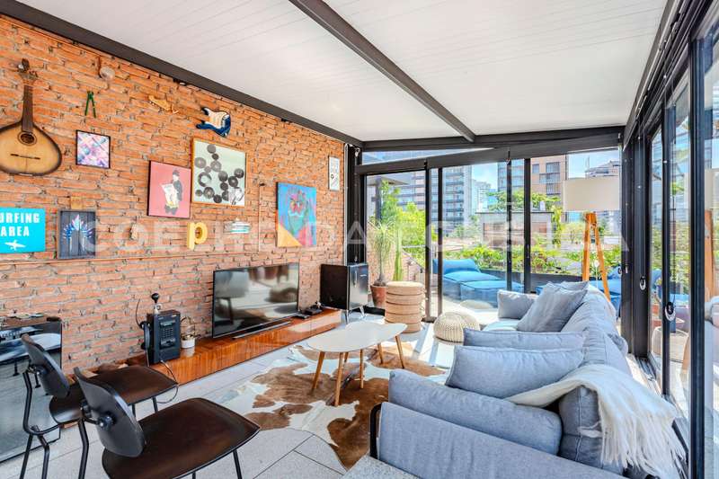 Living amplo mais cozinha gourmet espaçosa com copa