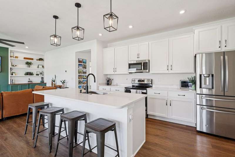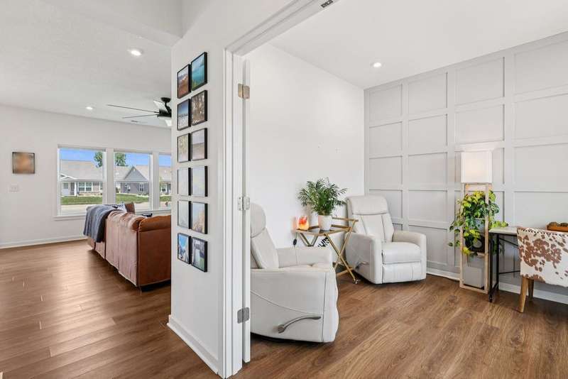 Why wait to build when this 2022 Fischer Homes Wesley Plan is ready & waiting for you?! The current owner has truly loved this home and never planned to move--if not for an unexpected life change, creating a rare opportunity for you to step into a nearly new, move-in-ready home without the wait of building. Nestled on a spacious corner lot in the sought-after Carriage Trails community (Bethel Schools!), this 4-bedroom, 2.5-bath home blends thoughtful design w/ stylish upgrades & plenty of room to live, work, & play. From the moment you step onto the covered front porch, you'll notice the difference. Inside, the private home office--w/ its custom trimwork & glass French doors--offers a quiet space for focus or creativity. The open-concept main living area features luxury vinyl plank flooring, recessed lighting, & modern fixtures, flowing seamlessly from the large family room (hello, custom-built-ins/shelves & electric fireplace!) into the bright kitchen & dining area. You'll love the eat-at island, quartz countertops, stainless steel appliances, generous cabinetry, & walk-in pantry--this kitchen was made for hosting. Sliding doors lead to a charming patio & a generously sized backyard--& thanks to the road behind the property, there's no neighbor's yard directly behind you. Like nearby homes, you could easily add a fence & arborvitae trees for even more seclusion. Whether you're dreaming of a playset, a spot for your furry friend, or just a little green space--this backyard delivers. Upstairs, the primary suite is a true retreat w/ added built-in cabinetry, a walk-in closet, & an en suite bath featuring a double vanity & walk-in shower. Three additional bedrooms & a full hallway bath provide space & flexibility for everyone. With sidewalks throughout the community, close proximity to major routes, & beautiful curb appeal, this home checks all the boxes. A two-car attached garage, main-floor laundry, $75/quarter HOA, & move-in-ready finishes complete the package.