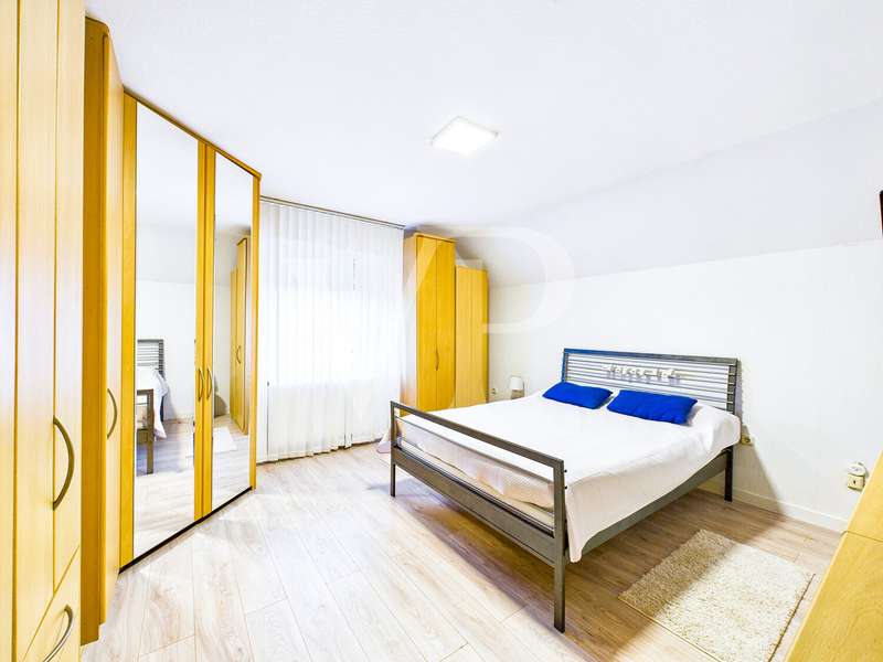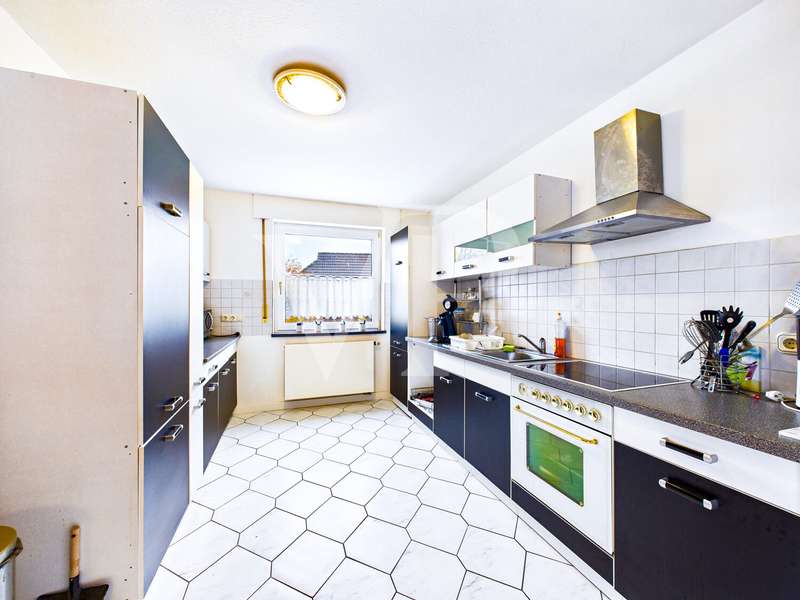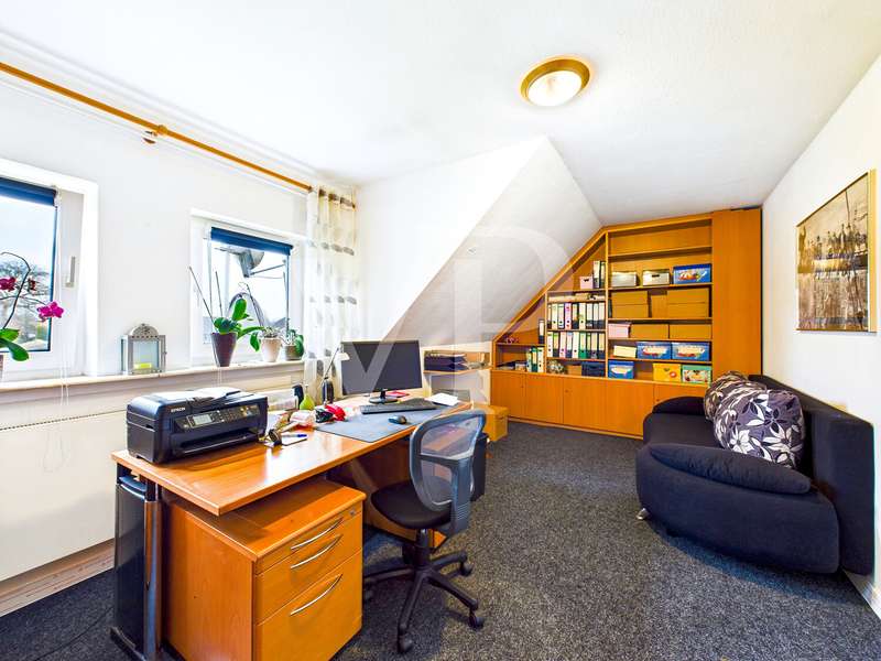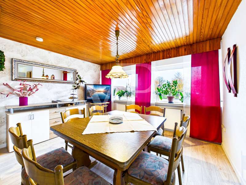 This charming two-family house is located in the heart of the Middels district of Aurich and offers two fully self-contained residential units that extend over the ground and upper floors. You enter the spacious first floor apartment with a living space of around 119 m² via the vestibule on the left. Here you will find a kitchen with adjoining living area, from which you have direct access to the terrace and the well-kept garden via a large window front. There is also a quiet bedroom and a bathroom with shower and bathtub. From the first floor apartment, you can also access the garage, the utility room and additional, spacious storage areas. The wooden staircase, which you enter through the right-hand door in the entrance area, takes you to the 104 m² apartment on the upper floor. To the left is the dining room with adjoining kitchen and separate storage room. From the hallway, you can also reach a shower room with shower cubicle, a separate WC, a bedroom and the room currently used as an office. The end of the hallway is the cozy living room, which offers an ideal place to relax with its access to the balcony. Large windows in all rooms ensure a bright and friendly living ambience. The attic is not converted, but offers plenty of storage space.