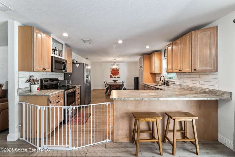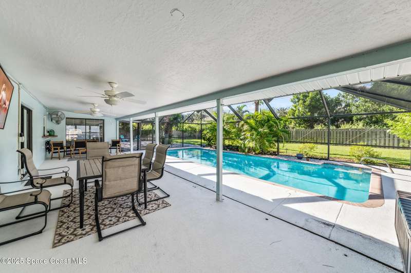 Welcome to your perfectly renovated pool home featuring a nice spacious layout with a large yard and side gate access ideal for a boat or RV parking. Bright and inviting living/dining areas flow seamlessly into a large kitchen with breakfast bar, eat-in space, stainless steel appliances and ample cabinetry. The split floor plan provides direct pool access from the master suite, which includes an updated ensuite bathroom. While a newly installed sprinkler system keeps the landscaping lush year-round. Outdoor living is made easy with an oversized pool, covered lanai, enclosed Florida room and a large fenced backyard. Close to Downtown Melbourne, FIT, shopping, and beaches, this home combines style, comfort, and convenience in a desirable neighborhood. Roof 2018/ HVAC 2021