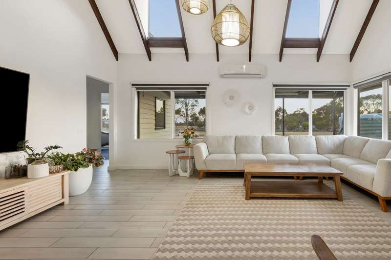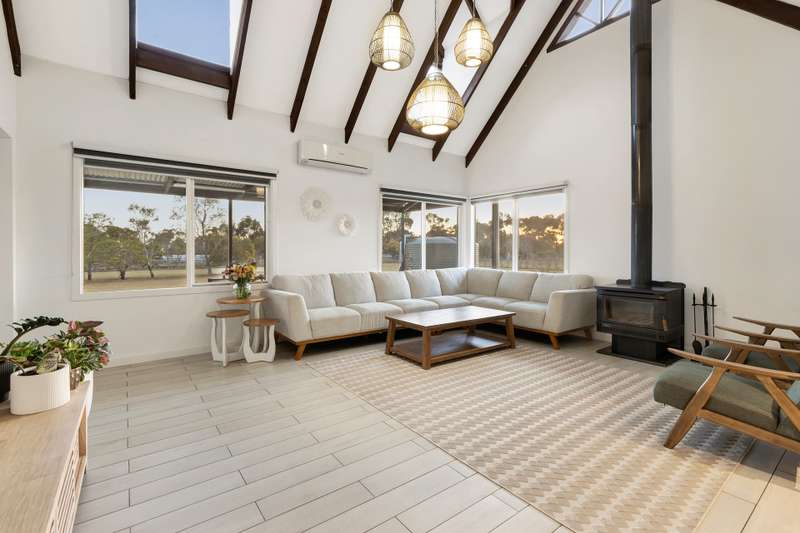 Welcome to 110 Malcolm Road, Little River, a beautifully renovated double-storey weatherboard home set on approximately 10.43 acres (42,208m²) of peaceful countryside, perfectly positioned between Melbourne and Geelong. This stunning property seamlessly blends modern living with a relaxed rural lifestyle and presents outstanding potential for future subdivision (STCA). Step inside to discover cathedral-style high ceilings, skylights, and bright open spaces that immediately create a sense of warmth and welcome. The home features five generous bedrooms, two stylishly renovated bathrooms, and multiple living zones designed for both comfort and versatility. The heart of the home is the sleek contemporary kitchen, complete with stone benchtops, brand-new electric appliances, and a fully equipped second kitchen or butler's pantry, perfect for large families or avid entertainers. Bathrooms are finished to a high standard, featuring open showers, long tile drains, and premium fittings. A mix of floorboards, tiles, and plush carpets adds texture and character throughout, while modern comforts include split-system heating and cooling, ceiling fans, a woodfire oven, solar panels, EV charging, and a comprehensive security camera system for added peace of mind. Outdoors, a large shed and enclosed undercover pergola provide ideal spaces for entertaining, relaxing, or simply taking in the serenity of the surrounding landscape. With approximately 10.43 acres of land, the opportunities for lifestyle enjoyment, hobby farming, or future development are limitless. Conveniently located near Little River Train Station, local schools, and freeway access, this home delivers the perfect balance of country charm and city convenience, offering a rare lifestyle opportunity where rural tranquillity meets modern sophistication.