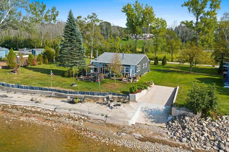Discover your perfect getaway on Green Bay with 133 ft of pristine waterfront! This charming 2-bedroom, 1-bath home has been beautifully updated, featuring a remodeled kitchen and bath, plus nearly all new windows to capture those breathtaking views. Enjoy evenings around the firepit on the beachside patio, launch your boat from the private ramp, and relax knowing you’ve got a retaining wall in place to protect your shoreline. Whether it’s fishing, boating, or simply soaking in the sunset, this property offers the best of waterfront living. Don’t miss this rare opportunity to own a slice of Green Bay paradise!