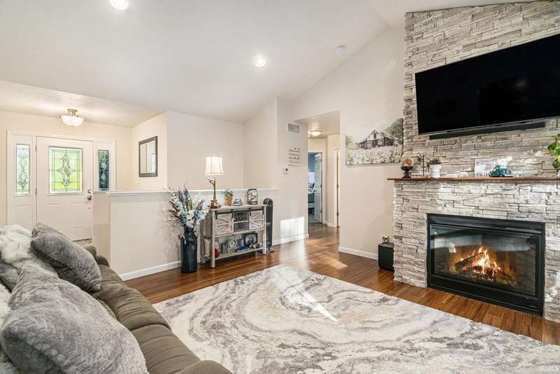 Welcome to this custom-built, meticulously maintained, 4 bedroom, 3 bath home in prestigious Portage Woods situated on just under an acre! The open and inviting floor plan flows seamlessly throughout, making it perfect for everyday living. The main level features a spacious primary suite with a large walk-in closet, double vanity, beautifully tiled shower, and soaking tub. You will also find two additional bedrooms, second full bath with double vanity, living room with a gorgeous fireplace, and kitchen you are sure to love. The basement features a 4th bedroom, full bath, TWO bonus rooms, and huge rec/family room perfect for entertaining. The oversized 3 car garage with epoxy floors provides ample space for vehicles, storage, and hobbies, as well as a wall mounted heater to keep you cozy during the chilly months. Enjoy quiet mornings on the paved patio or unwind in the hot tub after a long day. Conveniently located near Notre Dame, dining, and shopping. This stunning home was recently appraised for $620k, so new owner will receive instant equity! Schedule your tour today!