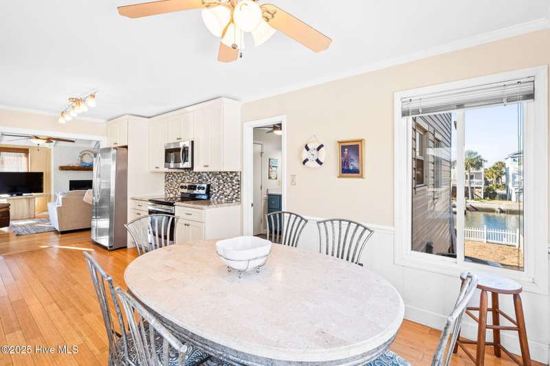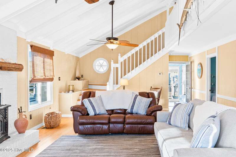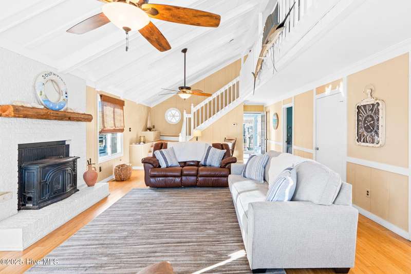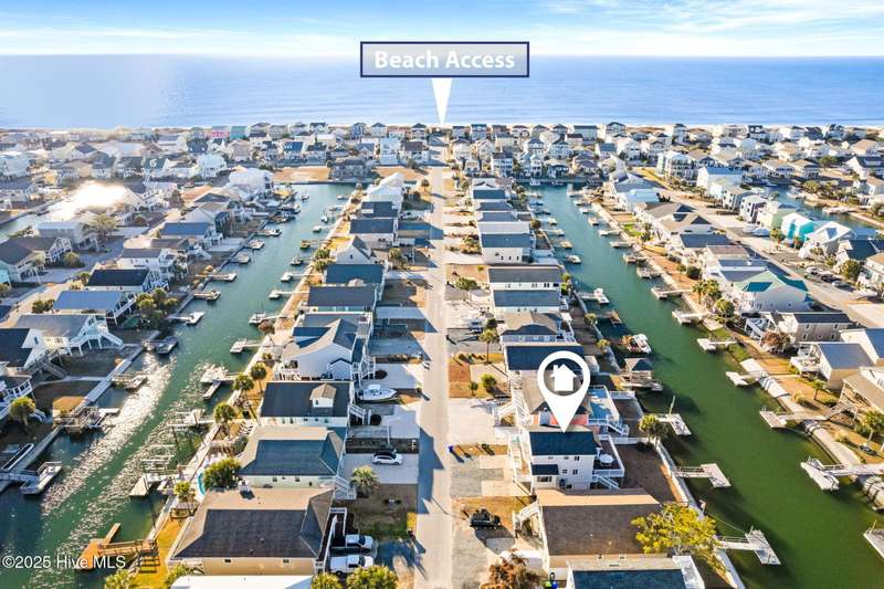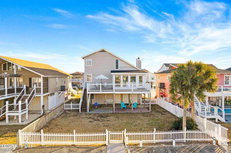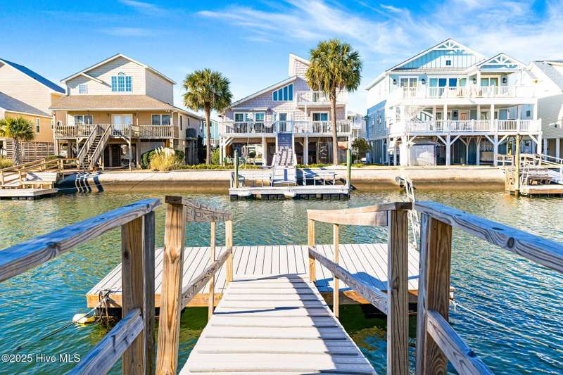 This charming beach cottage, located on Newport Street in Ocean Isle Beach, NC, offers direct beach access and deep-water amenities, including a new Trex dock and a landscaped, fenced yard with ample space for a pool. Additional features include an outdoor shower, a covered patio, low-maintenance vinyl siding and deck railings, and a two-car garage with extra parking. The property boasts stunning island and water views from nearly every window and a large deck ideal for year-round outdoor enjoyment. The bright, airy interior features large windows, vaulted ceilings, bamboo flooring, and a fireplace. The fully equipped kitchen includes Samsung stainless steel appliances and a family dining area, all surrounded by floor-to-ceiling windows offering captivating water views. A laundry room and full bath are conveniently located nearby. A first-floor bedroom with two queen beds overlooks the Newport canal. Interior stairs leading to the garage provide convenient access. A sunroom with a daybed and trundle bed offers additional sleeping accommodations.The expansive wooden staircase evokes the feeling of being aboard a ship. The waterfront bedroom features an antique poster bed and oak flooring, which adjoins a large bathroom and walk-in closet.The third bedroom is generously sized, including a bunk bed and a double futon, and features a walk-in closet. Ample storage is available in all rooms.Situated conveniently between Myrtle Beach and Wilmington, Ocean Isle Beach offers a wealth of amenities for beach enthusiasts. These include a new park, pier, miniature golf course, coffee shops, restaurants, shopping, boating, fishing, paddleboarding, crabbing, kayaking, and swimming.This property presents an exceptional opportunity to create lasting memories or serve as a lucrative investment property.