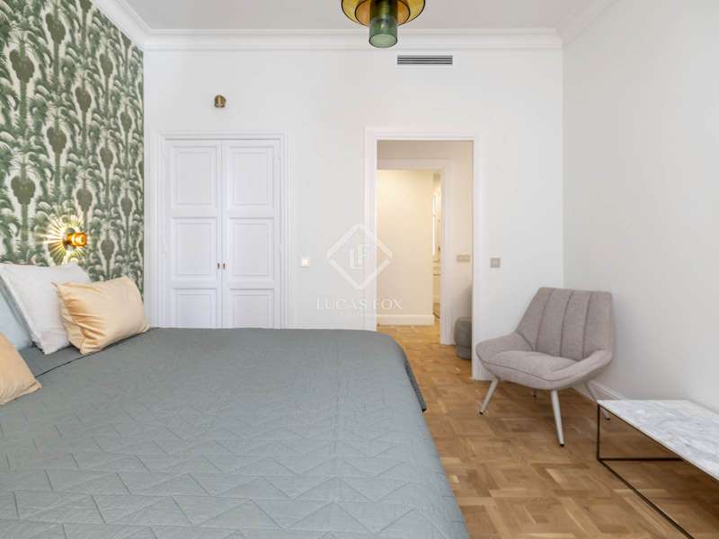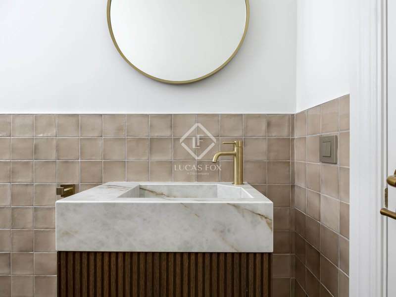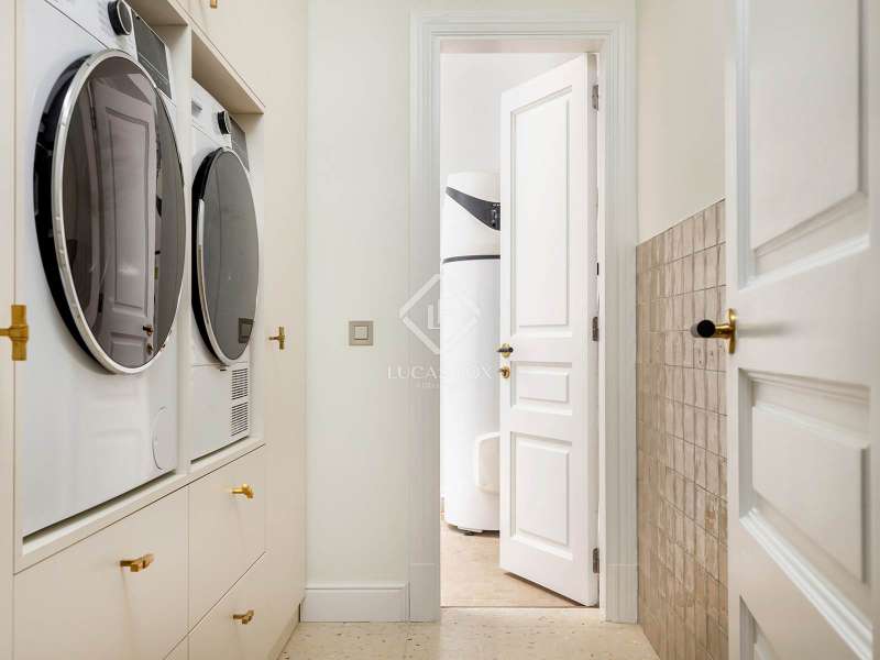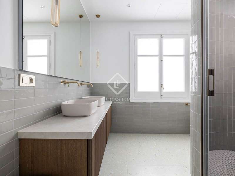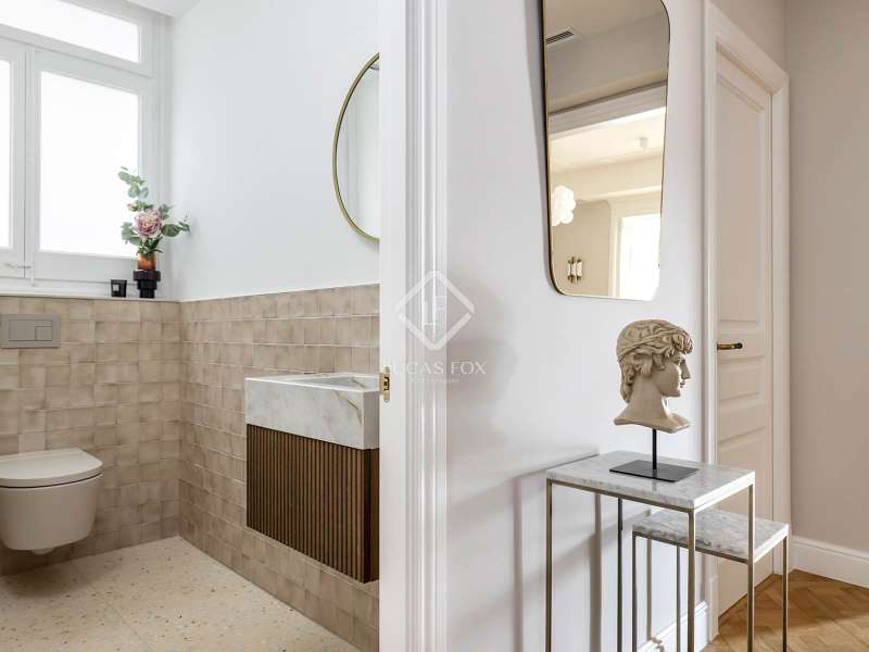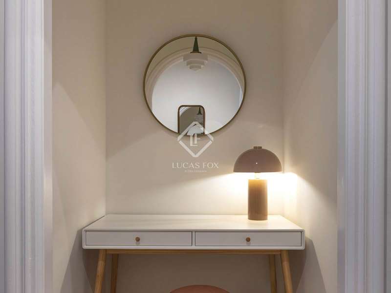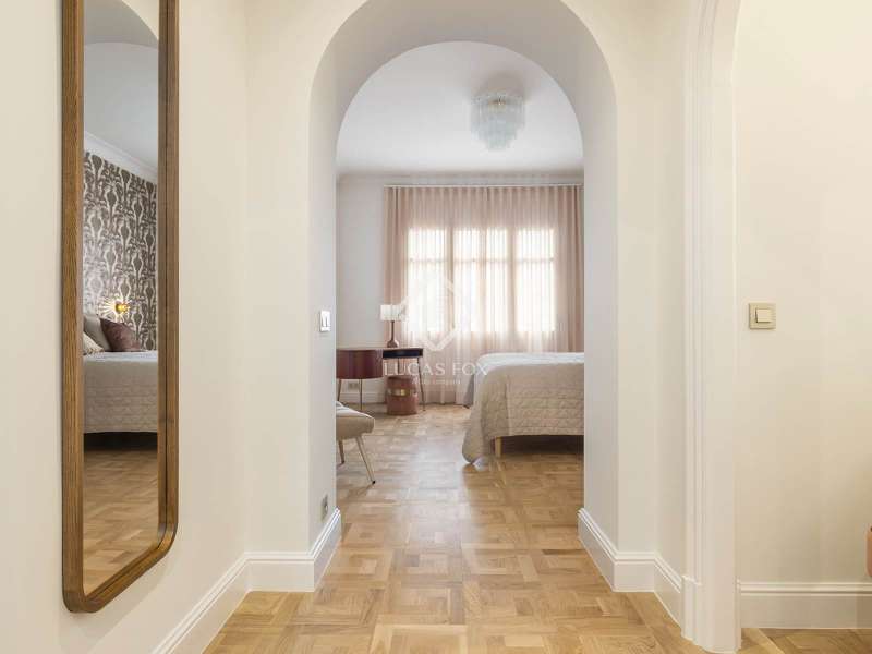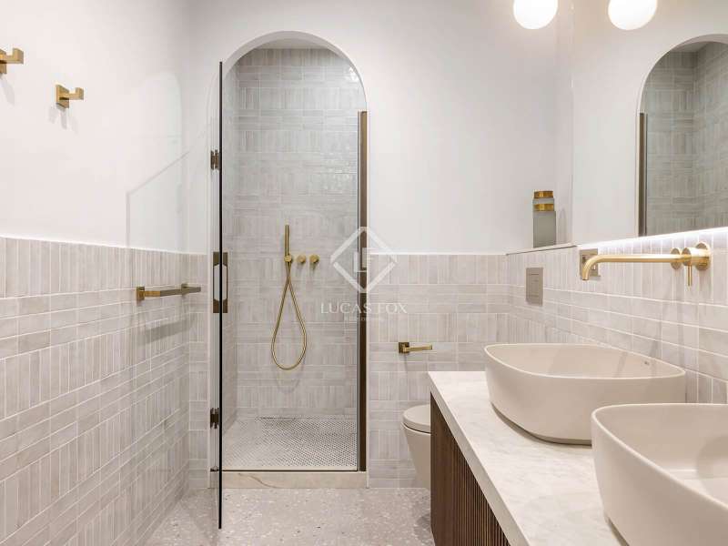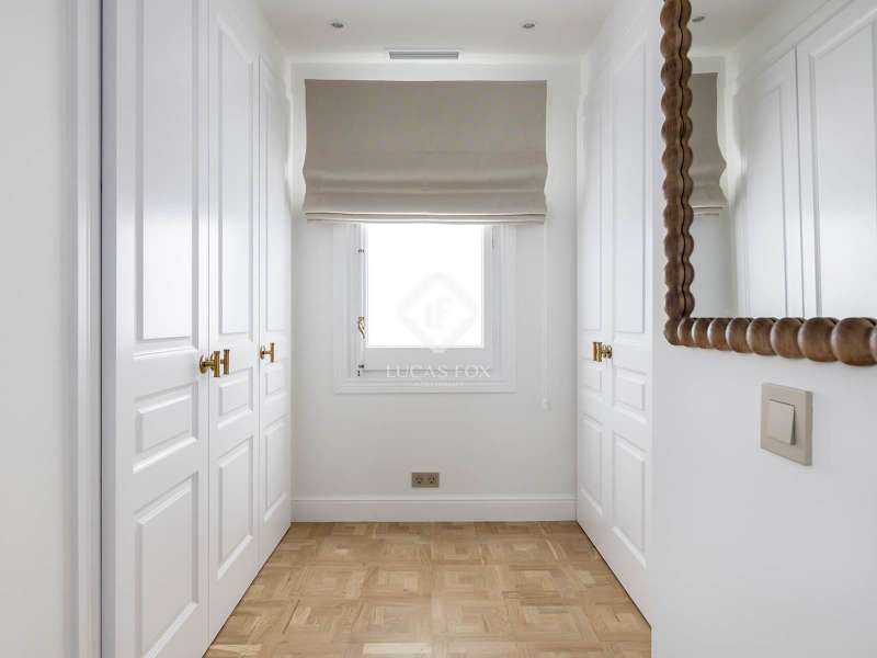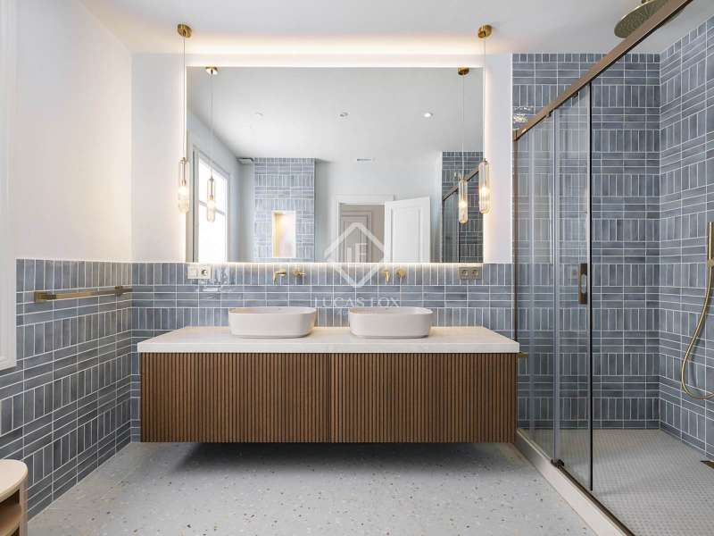 Nobohome has just completed the renovation of this impressive 250 m² apartment on the 3rd floor, which boasts stunning views of Muntaner Street from its prime location on Diagonal Avenue. The modernist building boasts a spectacular lobby, with a lift thanks to the concierge's careful maintenance. A second service elevator at the end of the lobby enhances the building's comfort. The apartment has been meticulously redesigned and renovated, ensuring maximum comfort and style. The spacious living room , overlooking Diagonal Avenue, blends seamlessly with the spacious dining room. The high-end kitchen, equipped with SMEG appliances , features an elegant breakfast bar and a cozy breakfast nook, perfect for informal dining. To the rear of the apartment, a stunning arched corridor leads to three generously sized double bedrooms, each with its own dressing room and luxurious private bathroom.