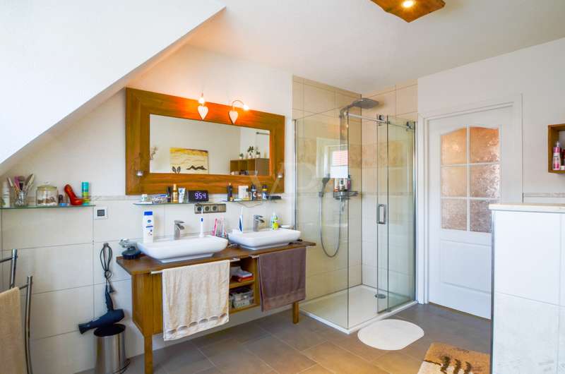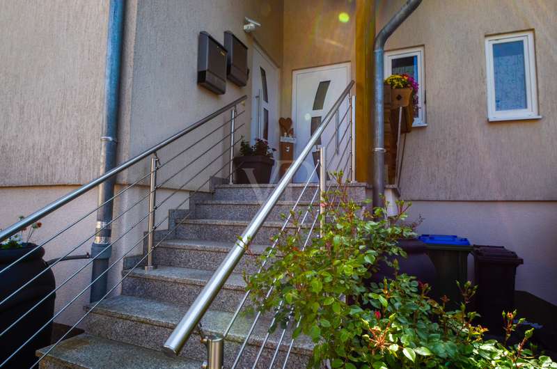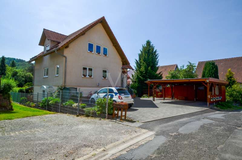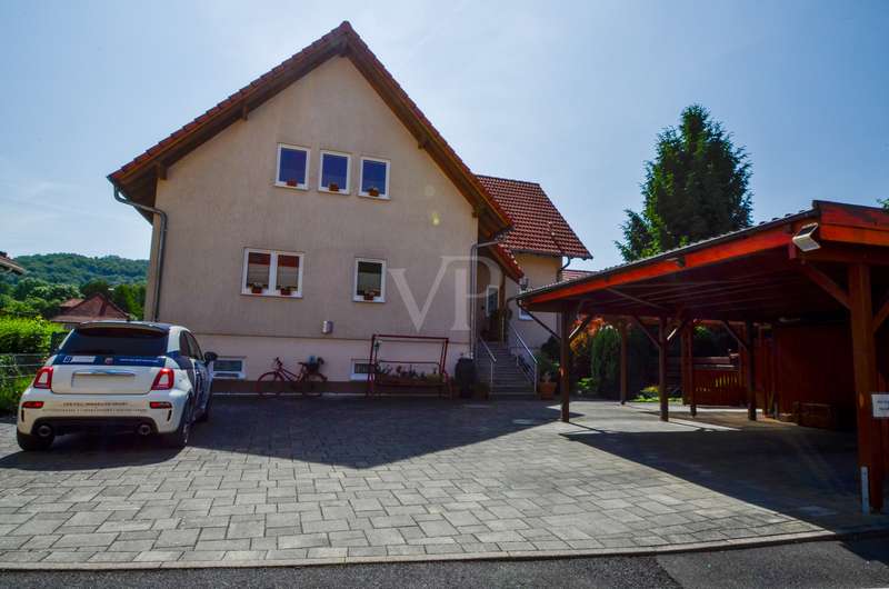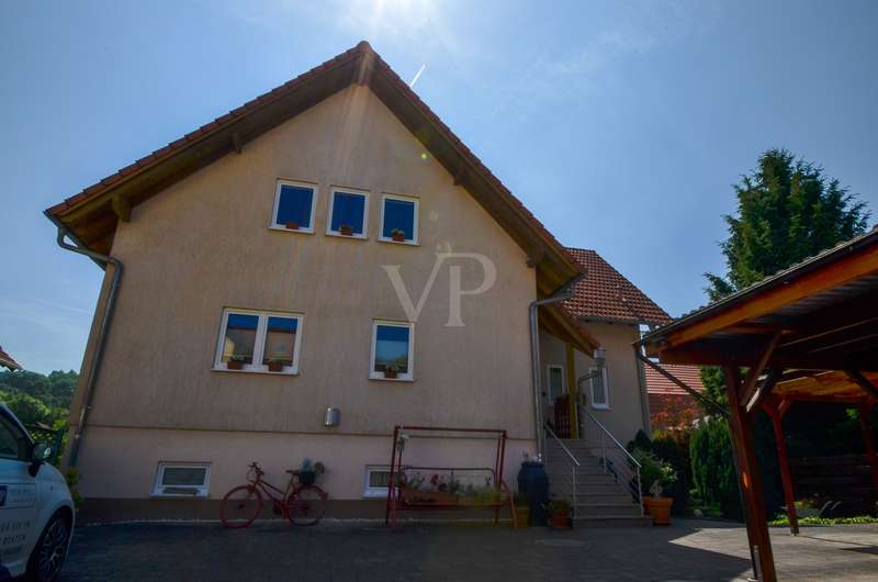 This well-kept and generously designed home combines modern comfort with flexible use - ideal for two families, a multi-generational constellation or for investors interested in vacation rentals. Built in 2000, the prefabricated house in timber frame construction was thoughtfully planned and continuously modernized. The basement is solidly built and thus offers both stability and energy benefits. The property is currently divided into three completely separate residential units, all of which have their own entrances and can be used individually: Main apartment: approx. 160 m² of living space with a generous layout and plenty of room for the whole family Second apartment: approx. 67 m², barrier-free with its own lift access - also ideal for senior citizens or guests Third apartment: approx. 40 m², including its own sauna for private wellness moments The two smaller units are currently being successfully run as vacation apartments and are fully furnished and equipped - including modern fitted kitchens. The complete equipment is already included in the purchase price, so that nothing stands in the way of direct subletting. Technology & equipment: Underfloor heating throughout the basement for pleasant living comfort Modern gas condensing heating, installed in the attic in 2011 All three fitted kitchens and all the furniture in the vacation apartments are included Outdoor area - relaxation and functionality combined: The approx. 890 m² property impresses with its well-kept garden and versatile outdoor areas: Spacious, covered terrace (approx. 50 m²) across the entire width of the house - ideal for relaxing hours outdoors Double carport with integrated storage room, single carport and two additional parking spaces Garden shed, small greenhouse, ornamental pond and plenty of space for hobby gardeners On request: takeover of garden tools and accessories possible Conclusion: Whether as a comfortable multi-generational home, for partial owner-occupation with rental income or as an attractive investment property - this well-designed house in prefabricated construction with a solid basement offers you a high degree of flexibility and is ready for immediate occupation or use. The natural, quiet location in Zella-Mehlis (Benshausen district) rounds off the offer. Arrange your personal viewing appointment now and discover the many possibilities of this special property!