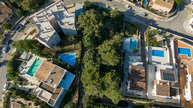 Located in the residential area of La Bonanova, this plot offers open views of the sea and the mountains.~~La Bonanova is just 10 minutes from Palma city centre and benefits from excellent road connections. It is close to international schools, shopping centres, hospitals, and the seafront promenade. The Bellver Forest and Cala Nova marina are also nearby.~~With a surface area of 1,407 m² and a gentle slope, the plot allows for the construction of a 1,100 m² home or two 520 m² homes over two floors. The rectangular shape (27 metres frontage by 64 metres depth) provides a clear distribution of space and makes excellent use of the land.~~The plot is covered with Mediterranean vegetation and mature trees, offering privacy. A swimming pool can be added according to regulations, and there is space for a garage or parking area. The property has access from an urban road and can be subdivided.~~The land is well oriented and enjoys views over Palma Bay and the surrounding mountains. It is connected to urban services: water, electricity, and sewage.~