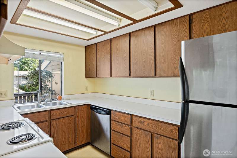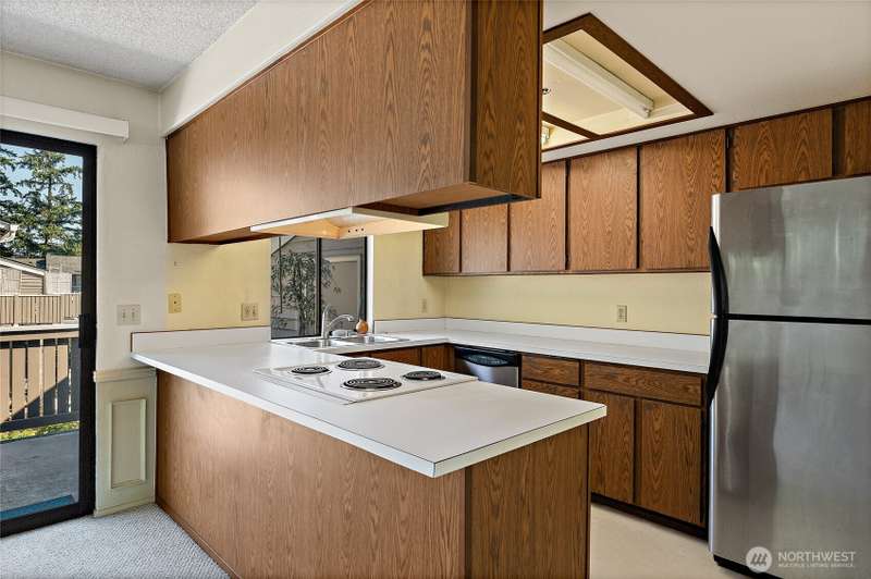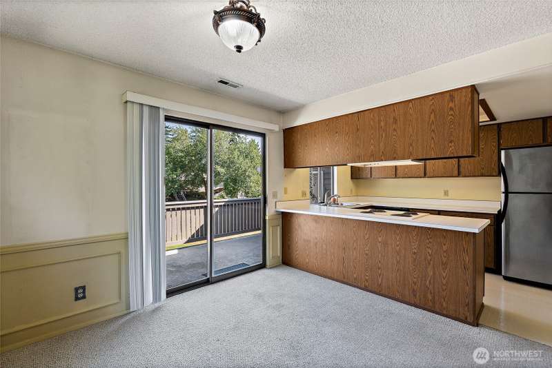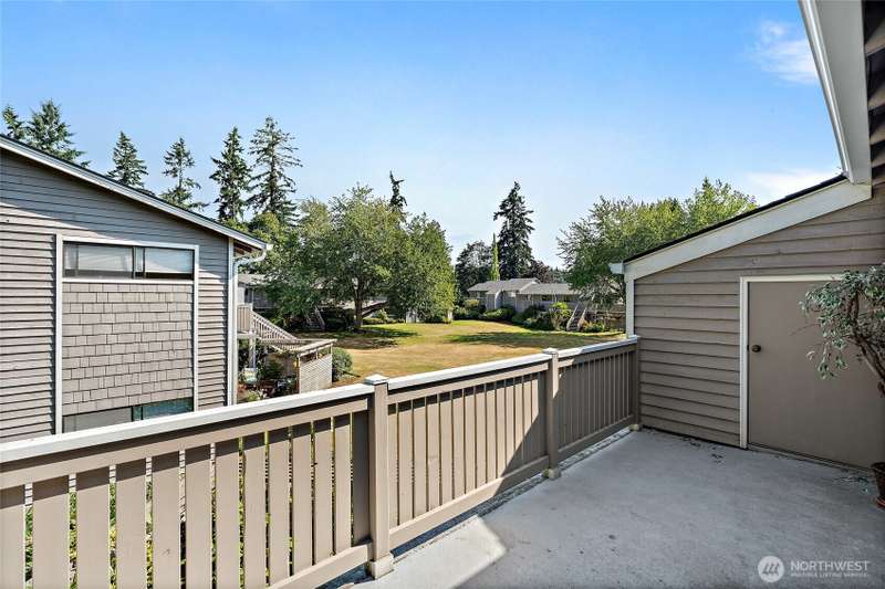 Large north Kirkland condo in the sought after Wild Glen community. Excellent 2 BR 1.25 bath end unit with deck facing the large grass area and the front facing large treed area which makes this one of the best locations in the complex. Seller paid off the $25,000 assessment. Lots of recent improvements to the buildings including roofs, stairways, trellises and more. This a great unit with lots of space, private deck area with epoxy flooring, wood FP in living rm, good sized bedrooms w/ 1 full bathroom and an additional ¼ bath off primary which is across from large walk in closet. A nice blend of Comfort & convenience in a prime location just minutes to 405, parks, top rated LW schools, shopping and restaurants. Time to make it your own.