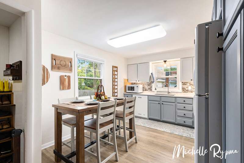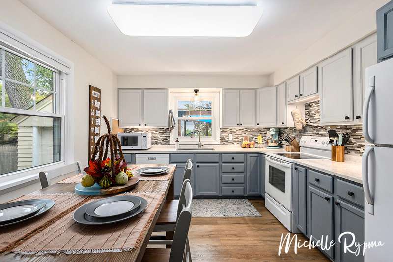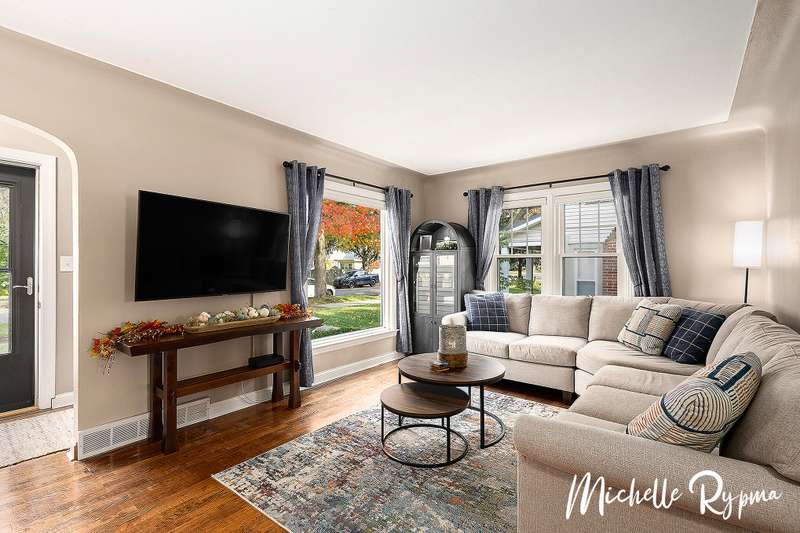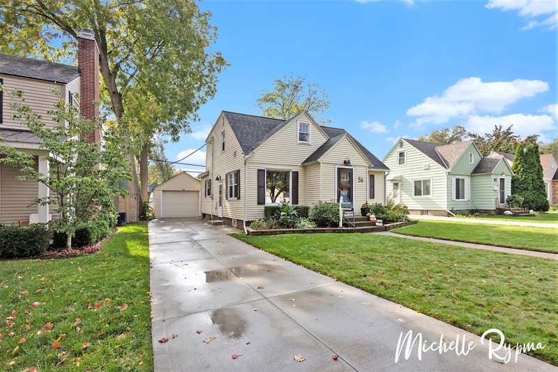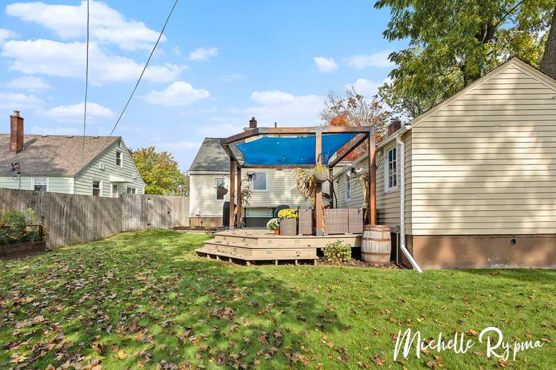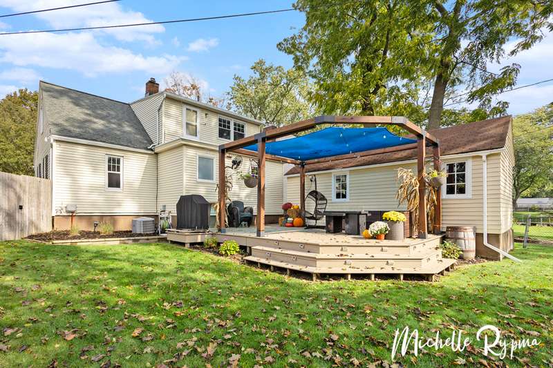 Meticulously maintained Cape Cod near Downtown Holland, blending timeless character with modern updates! Inside you'll find original hardwood floors, classic details, and a beautifully renovated kitchen with quartz countertops, vinyl plank flooring, barnwood accents, tile backsplash, and stylish cabinetry--perfect for everyday living and entertaining. Upstairs offers two spacious, beautifully updated bedrooms, while the basement includes a second full bathroom and ample storage space. The fenced-in large lot creates your own private retreat with a pergola featuring retractable screen shades, fans, and electric--perfect for outdoor movie or game nights! Enjoy plenty of room for gardens, games, or relaxing in the sun. All closets feature upgraded customizable organization. Major updates include a new driveway (2024) and full water service replacement to the street (2024). Charming home in a lovely south side neighborhood schedule your showing today!