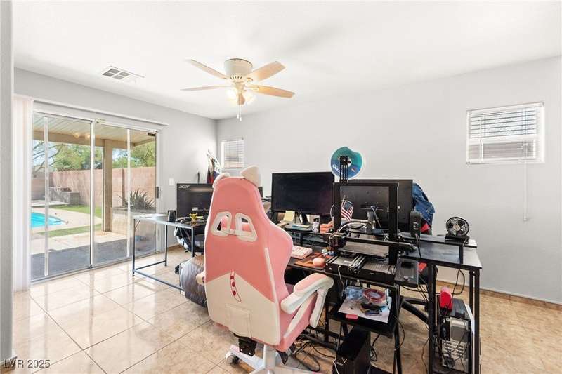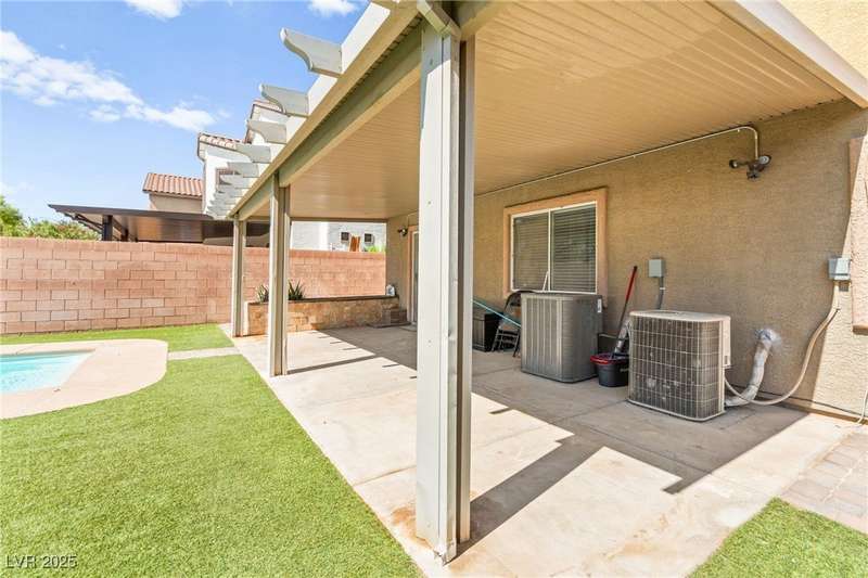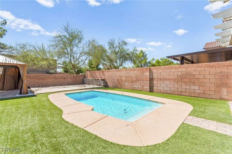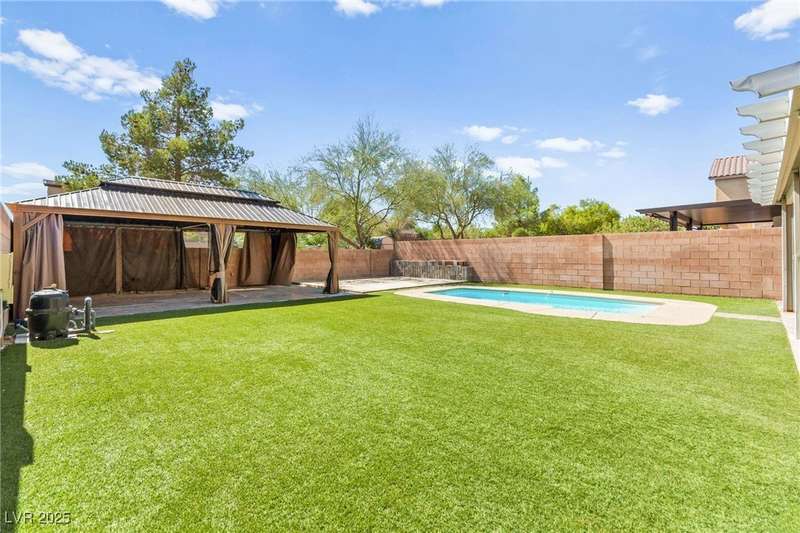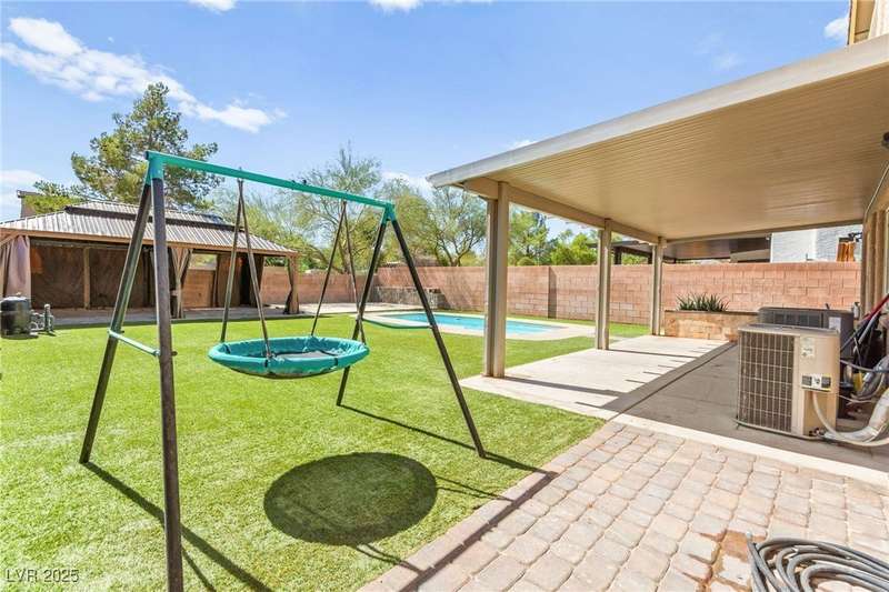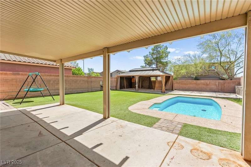 This stunning four-bedroom (with two bedrooms upstairs and two downstairs) offers an expansive private backyard. The beautifully landscaped yard boasts a sparkling pool, an oversized gazebo for shaded relaxation, and the added benefit of no rear neighbors—ensuring ultimate privacy. Inside, enjoy an upgraded primary suite featuring a luxurious tiled spa shower. With two spacious and open living areas, this home offers both comfort and flexibility. The three additional bedrooms provide ideal options for a home office, gym, or guest rooms. Notable upgrades include fresh interior paint, updated window blinds, a dedicated laundry room with extra storage and a sink, a brand-new upstairs HVAC system, and fully paid-off solar panels—delivering significant monthly energy savings. Located in a welcoming neighborhood, residents also enjoy access to a large private park complete with a grass field and multiple playsets.