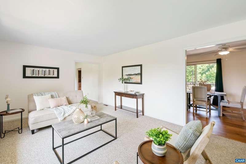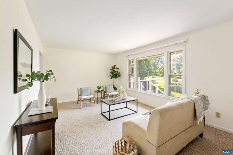 BRING YOUR VISION! $20k UPDATING ALLOWANCE NOW OFFERED! Open your next chapter in this must-see brick home! Space for everyone with 5 bedrooms; main level living; 2 beautiful acres; wonderful privacy; and super convenient location, less than 15 minutes from Charlottesville. An extraordinary value! Bathed in natural light and ready for your personal touches. Much of the main level has been freshly painted and offers a living room, study/den, spacious eat-in kitchen, gorgeous family room with woodstove and its own brand new HVAC system plus primary suite with adjoining home office and 4 additional bedrooms. The bright and cheerful terrace level features a 2nd primary suite, rec room, 2nd home office and another awesome family room with wood stove. Absolutely ideal for multi generation living with plenty of room for a kitchenette, plus separate entrance and covered patio. Newly stained decking in rear is a perfect spot to entertain, unwind and take in the sights and sounds of nature. Neighborhood access to the Rivanna Reservoir via lovely woodland path. Minutes from schools, shopping, dining and restaurants. Short drive to Ivy Creek Natural Area and Chris Green Lake plus hiking/biking trails, swimming holes, wineries and breweries.