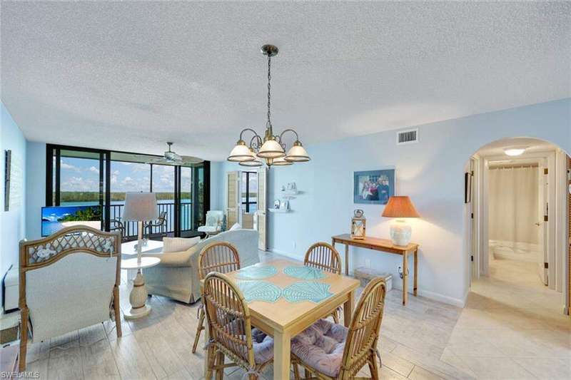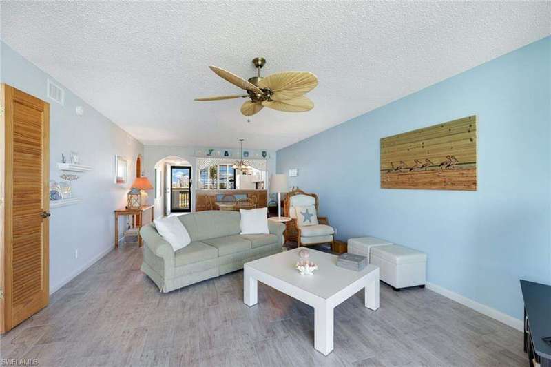 This turnkey 2 bed/2 bath unit is located on the 3th floor at the highly sought after South Island, Bay Beach Lane complex "The Palms of Bay Beach". This truly is a great opportunity to invest on the Island in a totally updated Estero Bay front condominium complex, including new roof, parking lot, exterior paint and new Lanai rails and screens. This unit is immediately available and ready to welcome its new owners. You will feel at home and be captivated the moment you walk through the door and take in the sweeping, breathtaking views of Estero Bay. This unit is guaranteed to forever provide the rare but perfect combination of peaceful tranquility and an abundance of natural SWFL lively entertainment provided by Mother Nature. Dolphins, manatee, and majestic seabirds are always visible and happily entertaining you while you relax in your living room or lounge on your Lanai. Boaters will be within a convenient short walk to find a variety of options to lease or buy a boat slip providing quick/convenient access to boating and fishing on the Gulf of Mexico. Comfortably walk to either the private EBIA resident only access, never crowded, white sand picturesque beach on the Gulf of Mexico or visit Santini Plaza which is expanding and will soon offer a variety of restaurants and shopping options, or simply enjoy the communities beautiful expansive heated swimming pool, club house, exercise room, extensive walking path, pickleball, tennis, putting & chipping greens, driving cage, and bocce courts right across the street. In addition to these amenities your condo fee also includes private beach access, Internet, cable, water, sewer, trash and irrigation. More good news, there is one dedicated covered parking space included and there is plenty of outdoor parking available for guests and ALL HURRICANE IAN ASSESSMENTS HAVE BEEN PAID IN FULL. This prime affordable South Island location on Estero Bay is geographically perfect and the choice is all yours, head South to enjoy Lovers Key State Park, Bonita Springs and Naples or head to the North end of the Island on the complimentary FMB Trolley or bus to experience the newly opened Margaritaville Resort, lively nightlife and a diverse choice of restaurants. It is the perfect Island location, and it offers the perfect Island lifestyle choices and balance. LOOK NO FURTHER, BUT DON'T HESITATE, YOUR AFFORDABLE WATERFRONT PARADISE FOUND!