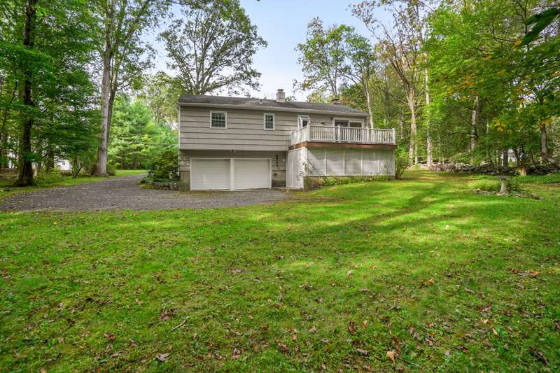 Discover this raised ranch nestled on a quiet cul-de-sac in sought-after south Ridgefield. This home offers a fantastic opportunity for new owners to immediately make it their own, with ample living space on both the upper and lower levels. The property presents a clean slate for those looking to customize to their personal style. Step inside to a bright main level with hardwood floors, which includes the living room with wood burning fireplace, dining area with sliders to Trex deck and an updated kitchen. Loads of natural light fills the space, creating a warm and inviting atmosphere. There are three bedrooms, full hall bath and the primary bedroom with a half bath. The finished lower level expands the home's functional square footage, perfect for use as a family room or a home office offering an additional fireplace, half bath and laundry room. Oil baseboard heat and split air-conditioning units. Portable generator hook-up. Attached two car garage. Enjoy the privacy of a large, one acre level property. Located in the tranquil setting of Ridgefield, the home offers peace and quiet while being just a short drive from the town's vibrant Main Street. Ridgefield is known for its excellent schools, community events, and easy access to shopping and dining. This home will convey as-is.