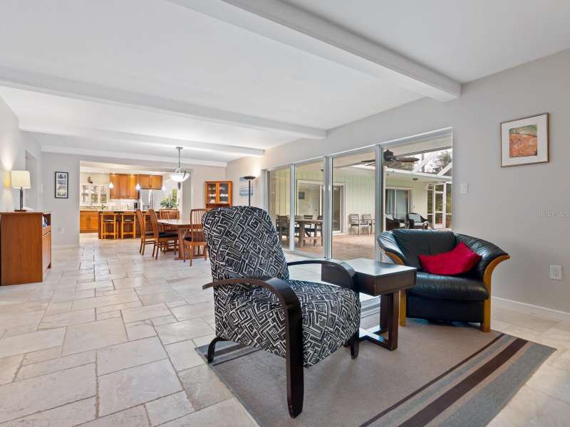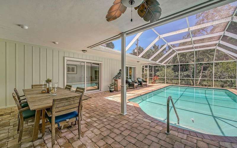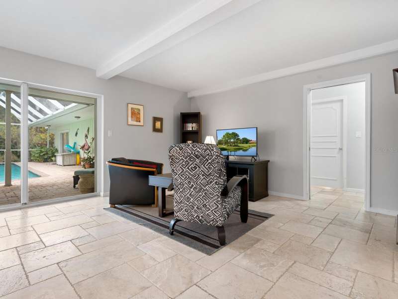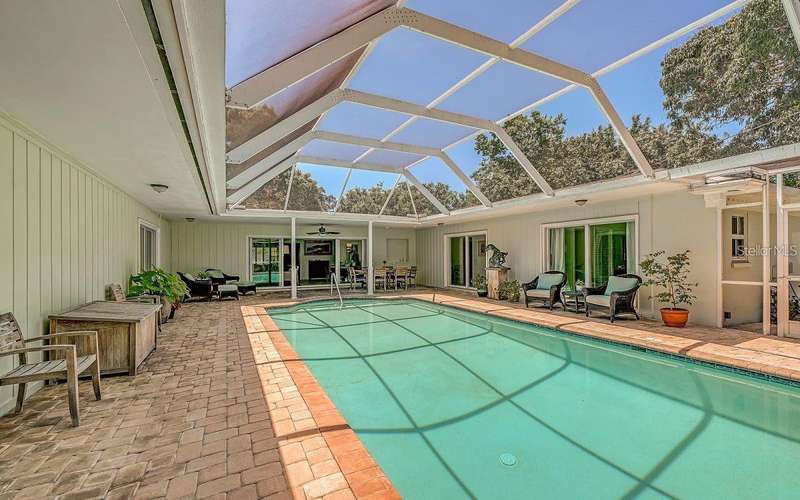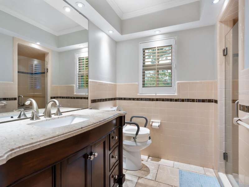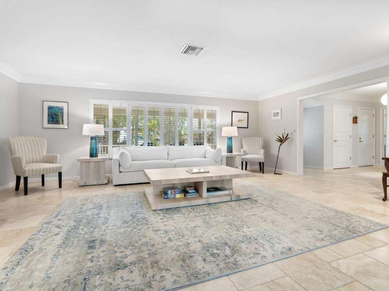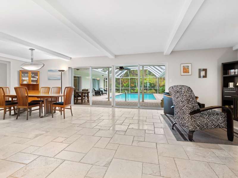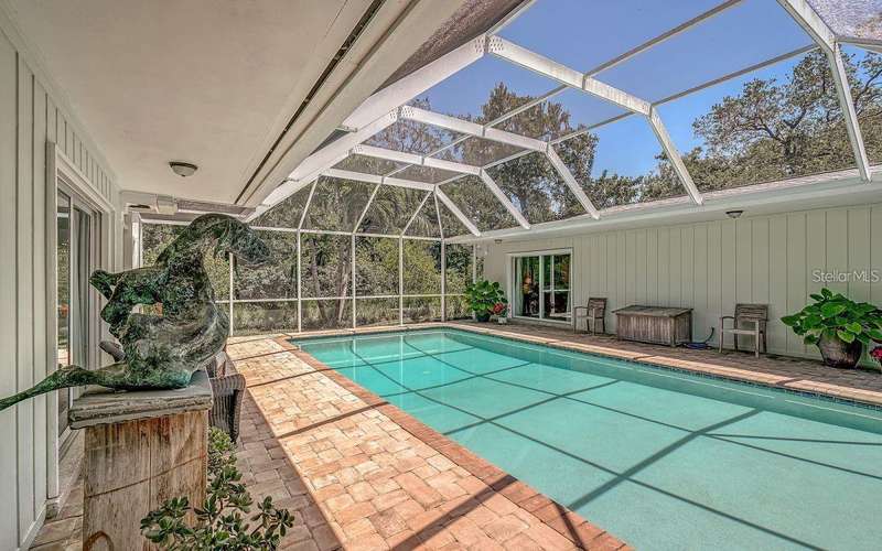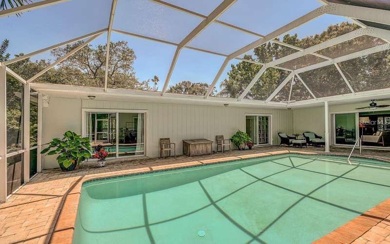 Significant price change offers exceptional value. West of the Trail and North of downtown are Whitfield Estates, a lovely neighborhood established in the 1920's with canopied streets, large lots, and a variety of architectural styles. Tree lined streets and sidewalks make this neighborhood ideal for dog walking, biking, and meeting your neighbors. This elegant Whitfield Estates home of over 4000 square feet on one level encloses a spacious swimming pool. With four bedrooms and four ensuite baths, this home offers space and privacy for all - ideal for a large or multi-generational family or for working from home. A chef's kitchen with breakfast area flows nicely into the formal dining area, spacious family room and formal living room. Enjoy entertaining on your screened outdoor patio with large pool or on your gracious front porch or side patio. Stylish details include travertine floors, crown molding, granite counters, wood cabinets and plantation shutters. Recent updates include a new roof (2021), new AC (2024), two new 40 gallon water heaters (2020), new washer and dryer (2020), new pool heater (2022), as well as significant electrical and plumbing upgrades. Launch a kayak in nearby Sarasota Bay or enjoy the sunsets and water views from your front porch. Nearby are The Ringling Art Museum, New College, The University of South Florida, The Ringling College of Art and Design, The Asolo Theater, and Sarasota/Bradenton International Airport. A short drive brings you to downtown Sarasota and the world renowned beaches of Lido and Siesta Keys.
