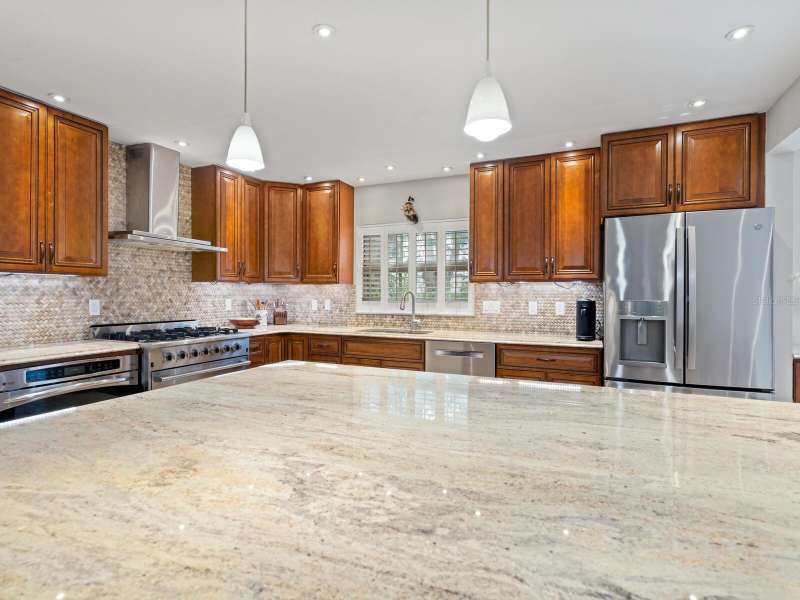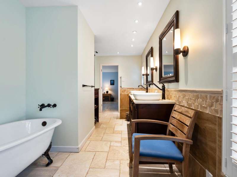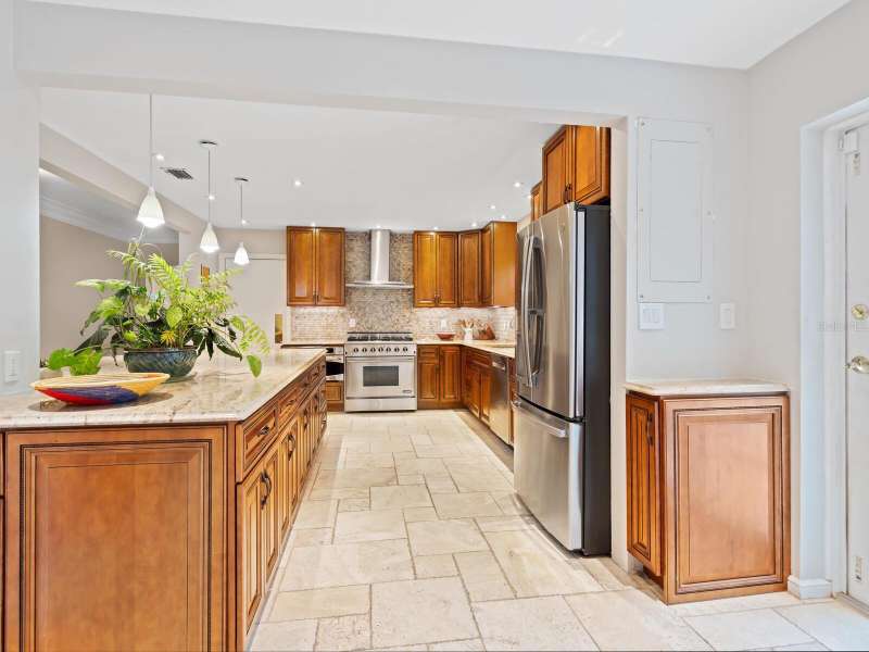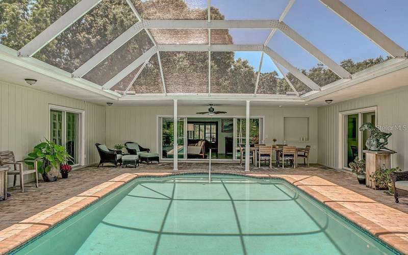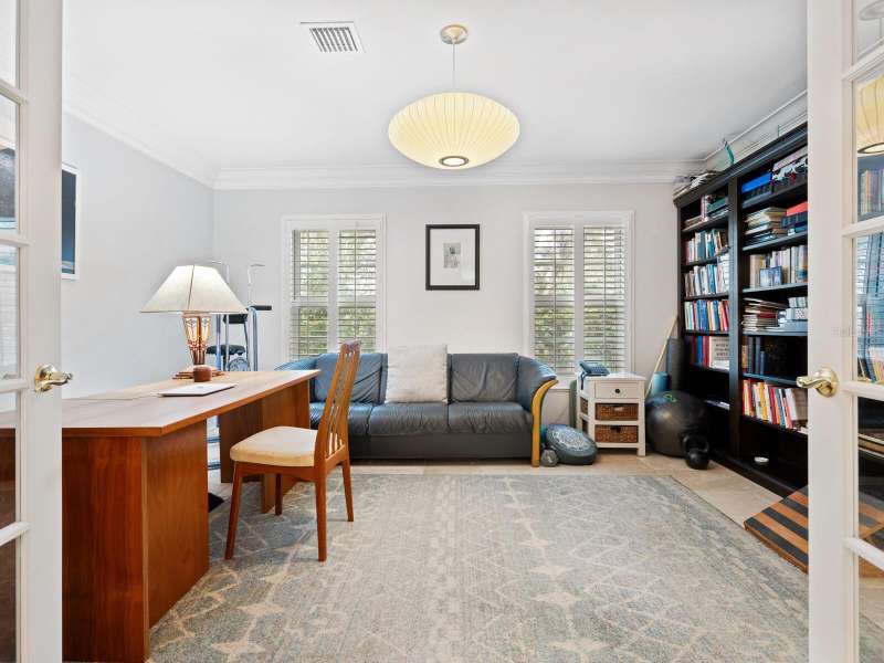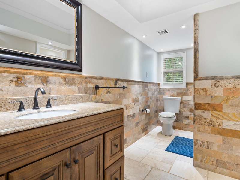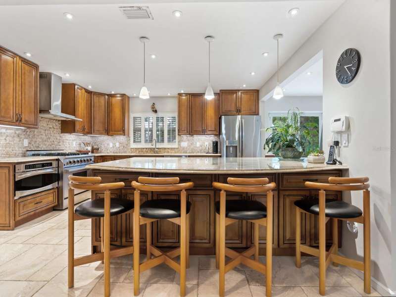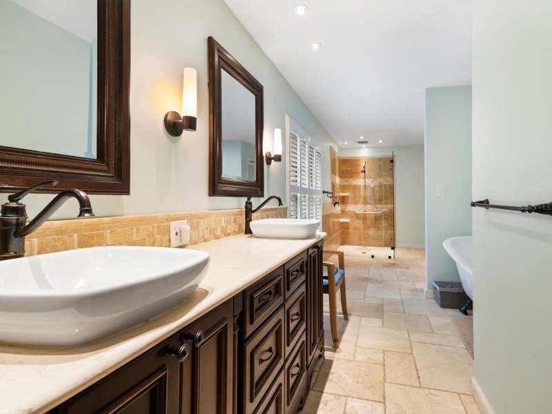 Significant price change offers exceptional value. West of the Trail and North of downtown are Whitfield Estates, a lovely neighborhood established in the 1920's with canopied streets, large lots, and a variety of architectural styles. Tree lined streets and sidewalks make this neighborhood ideal for dog walking, biking, and meeting your neighbors. This elegant Whitfield Estates home of over 4000 square feet on one level encloses a spacious swimming pool. With four bedrooms and four ensuite baths, this home offers space and privacy for all - ideal for a large or multi-generational family or for working from home. A chef's kitchen with breakfast area flows nicely into the formal dining area, spacious family room and formal living room. Enjoy entertaining on your screened outdoor patio with large pool or on your gracious front porch or side patio. Stylish details include travertine floors, crown molding, granite counters, wood cabinets and plantation shutters. Recent updates include a new roof (2021), new AC (2024), two new 40 gallon water heaters (2020), new washer and dryer (2020), new pool heater (2022), as well as significant electrical and plumbing upgrades. Launch a kayak in nearby Sarasota Bay or enjoy the sunsets and water views from your front porch. Nearby are The Ringling Art Museum, New College, The University of South Florida, The Ringling College of Art and Design, The Asolo Theater, and Sarasota/Bradenton International Airport. A short drive brings you to downtown Sarasota and the world renowned beaches of Lido and Siesta Keys.