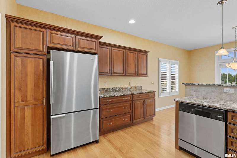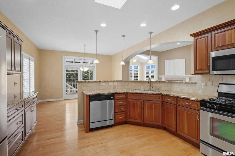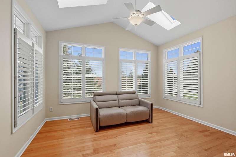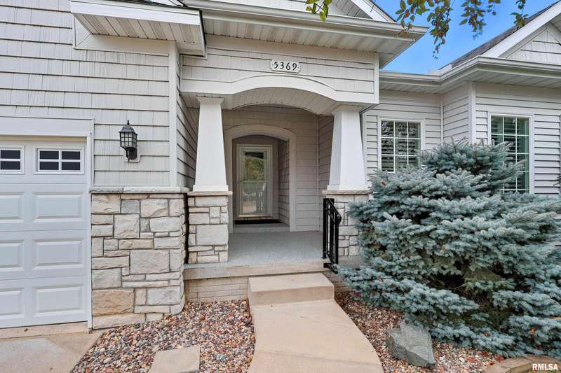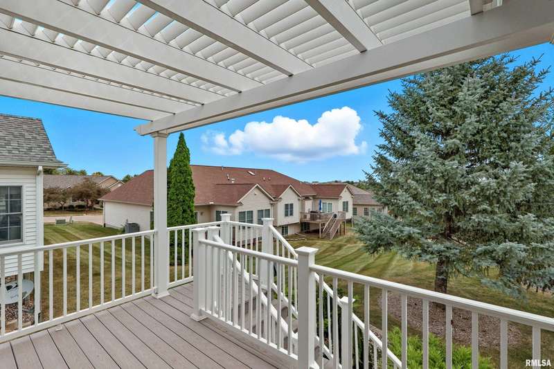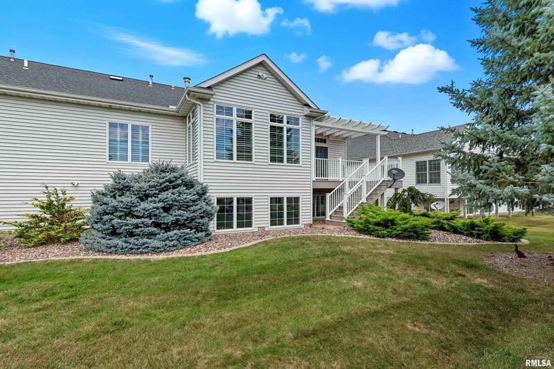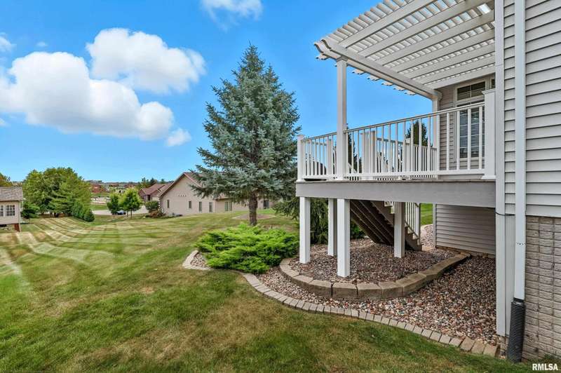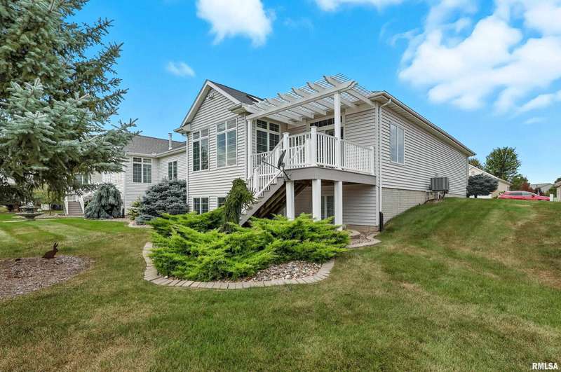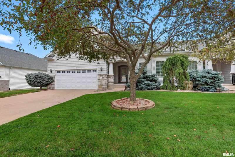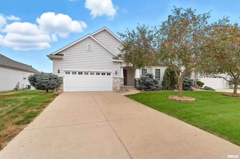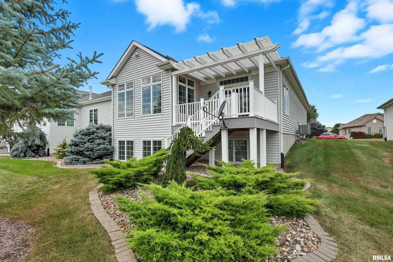 Beautiful, well maintained 3 bedroom (possible 4th BR) ranch style villa located on a quiet cul-de-sac in the PV School District of Bettendorf. Covered front porch has epoxy flooring, leading into a spacious foyer open to the living/great room and light-filled 4-seasons room. The kitchen is beautifully appointed with granite countertops, breakfast bar, & pantry. Main floor laundry with drop zone off of the attached 2-car garage. Maintenance free deck with pergola off of the informal dining room, & is perfect for enjoying peaceful morning sunrises.Main floor has lots of natural light, skylights and custom plantation shutters on most windows.Primary bedroom is at the rear of the home & features tray ceilings.Main floor secondary bathroom was recently remodeled to include a walk-in shower with folding seat. Finished basement has daylight windows, & includes a rec room, den/office, 3rd bedroom, full bathroom, possible 4th bedroom that has been framed, but not finished, & plenty of unfinished space for storage.Water softener is included and helps keep appliances & mechanicals clean & working longer. Home has irrigation & radon mitigation systems. Furnace & A/C approx. 7 years old. Roof 2018. All appliances included.