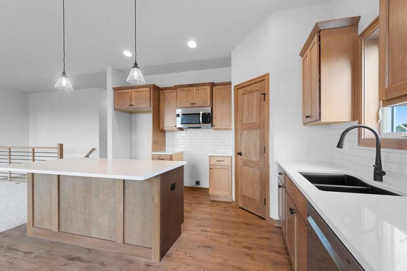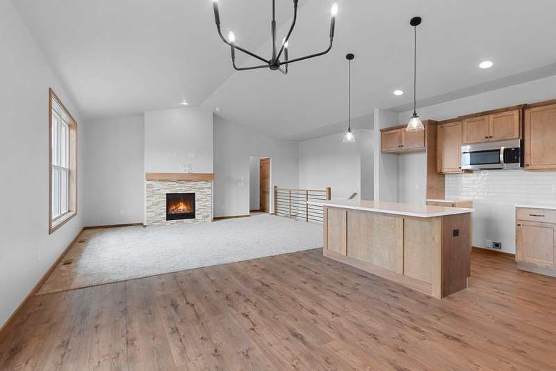 Another high-quality new construction by Van's Construction of Appleton. This is a new plan, Isabelle, that has never been built before in the De Pere area. This awesome floor plan offers 1720 sq ft, 3 bedrooms, 2 baths, spacious living room has a gas fireplace and is open to the dinette-kitchen area. Kitchen offers maple cabinets, quartz countertops, tile backsplash and center island. The primary suite has a large walk-in closet and private bath with double sink vanity. 1st floor laundry, open staircase to the egress lower level. Brick and vinyl exterior. Large backyard!