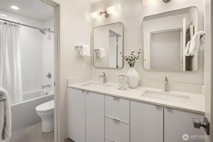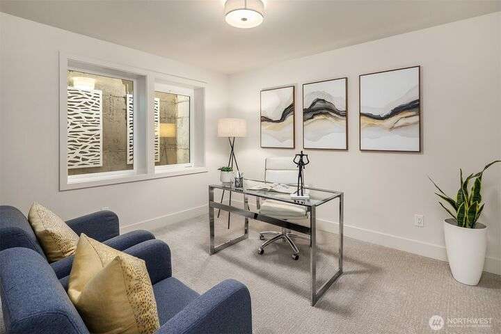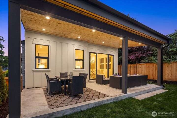 New construction by DKWozniak Design Build with a coastal flair in coveted West of Market. Light-filled main level features open living, dining, and kitchen with gas fireplace, built-ins, and sliders to a covered patio and fenced yard—perfect for indoor/outdoor living. Kitchen shines with Monogram appliances and custom cabinetry, with drybar in the dining room. Upstairs offers a serene primary suite, two additional bedrooms, full bath, and oversize laundry with extensive storage. Fully finished basement includes a spacious rec room for entertaining, dry bar with beverage fridge, plus guest bed and bath. Enjoy proximity to Lake Washington, Waverly Beach Park, and downtown Kirkland. EV-ready garage completes this home!