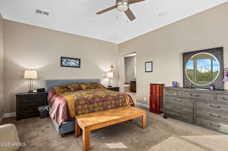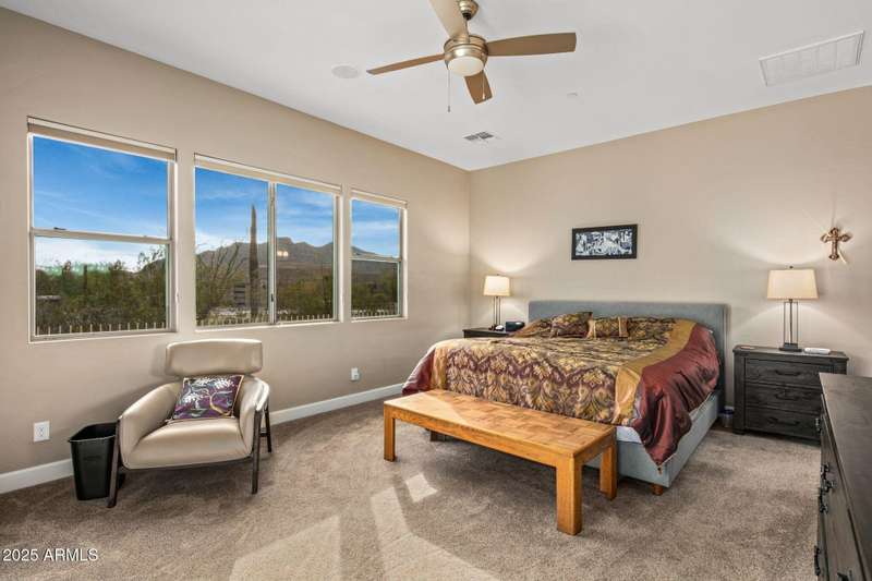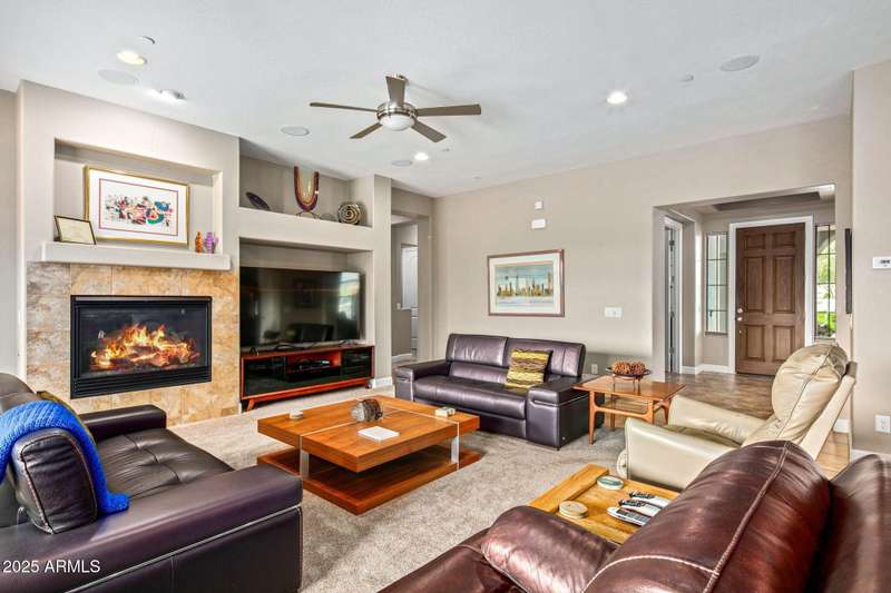 Introducing a serene lifestyle within the prestigious Reserve at Tranquil Trail gated community in Carefree. This 3 bed, 2.5 bath home is tucked away in a peaceful cul-de-sac, boasting the breathtaking backdrop of Black Mountain. The welcoming covered patio sets the tone for this lovely home. Inside, discover a spacious living area seamlessly connected to an upgraded kitchen featuring a breakfast bar and breakfast nook. An office with built-in bookshelves and a separate dining room provide functional elegance. Outside, the covered back patio presents uninterrupted views of Black Mountain, perfect for seamless indoor/outdoor living, and the electronic shade screen ensures effortless alfresco dining and relaxation. Experience Arizona's outdoor allure, captivating sunsets, and enchanting ...