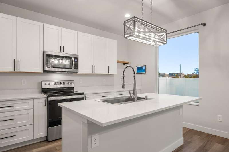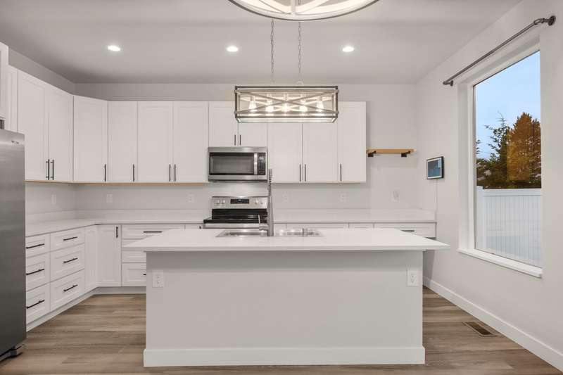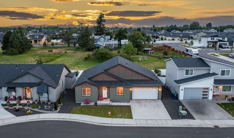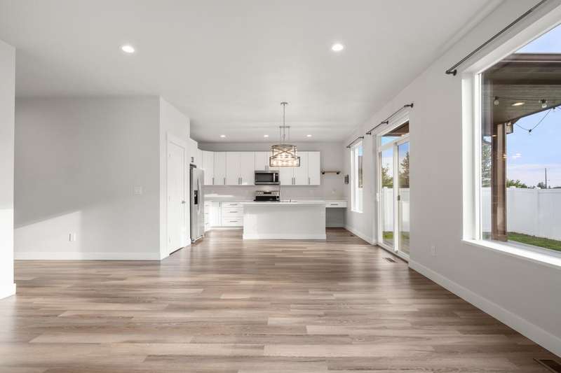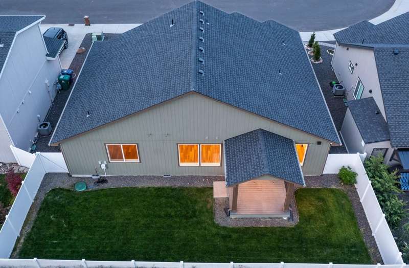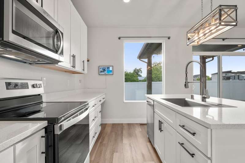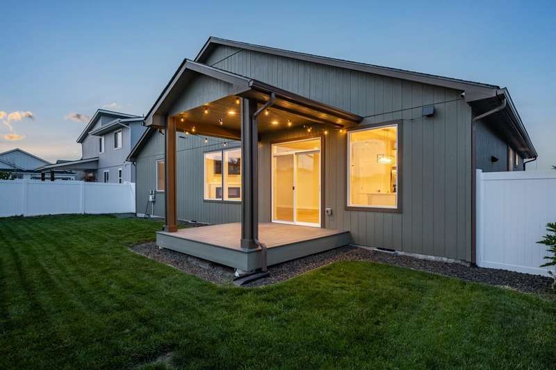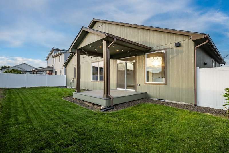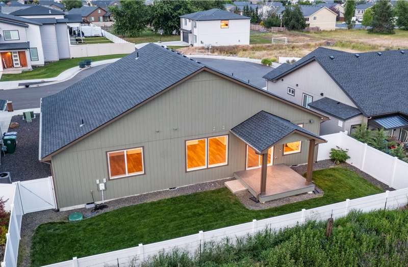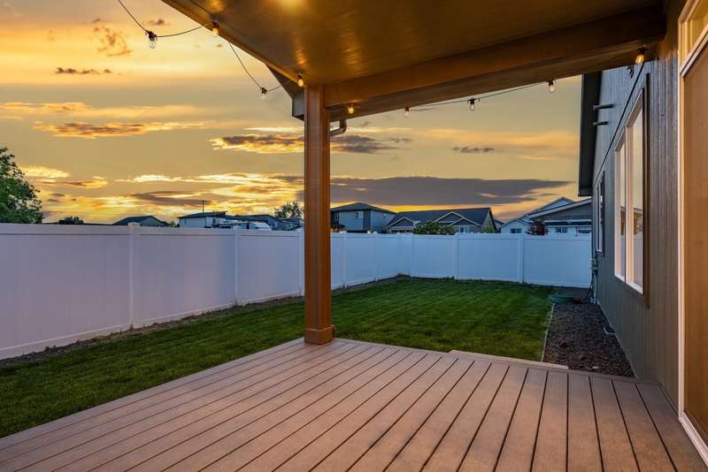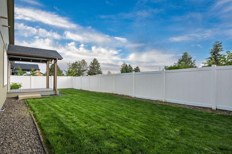 Better than new Five Mile Prairie one level living with gorgeous sunsets from the covered deck! Convenient low maintenance fenced yard but enough room for kids, animals or your dream garden! Fantastic open concept with modern fireplace, great daylight, beautiful wood grain LVP flooring throughout and rare four bedrooms on one floor. Perfect white quartz kitchen with stainless steel appliances, island with breakfast bar, pantry, desk area with Amazon Echo Show (TV/computer screen) on the wall for those who like to stay organized and a nice dining area to the relaxing deck. Large primary suite with quality finishes & nice walk-in closet. Oversized mud/laundry room with sink, hanging/drop zone & washer/dryer included. Nice upgrades: Tankless water heater, Ecobee Smart Thermostat that links to your phone, Govee exterior lights w/ color choices...cool, solar panel exterior string lights & second beverage refrigerator in the garage. Great Mead Schools & easy access to hiking, parks, dining, shopping, & hospitals.