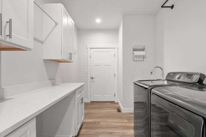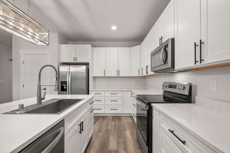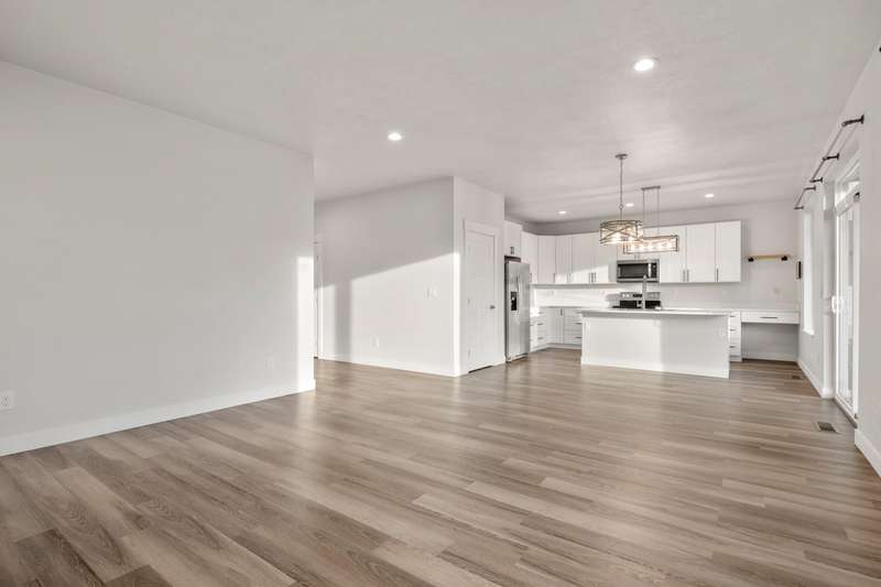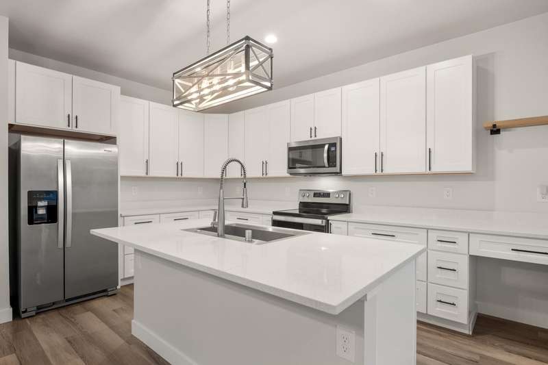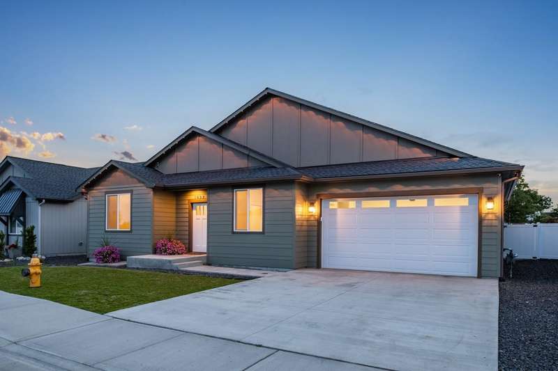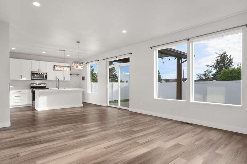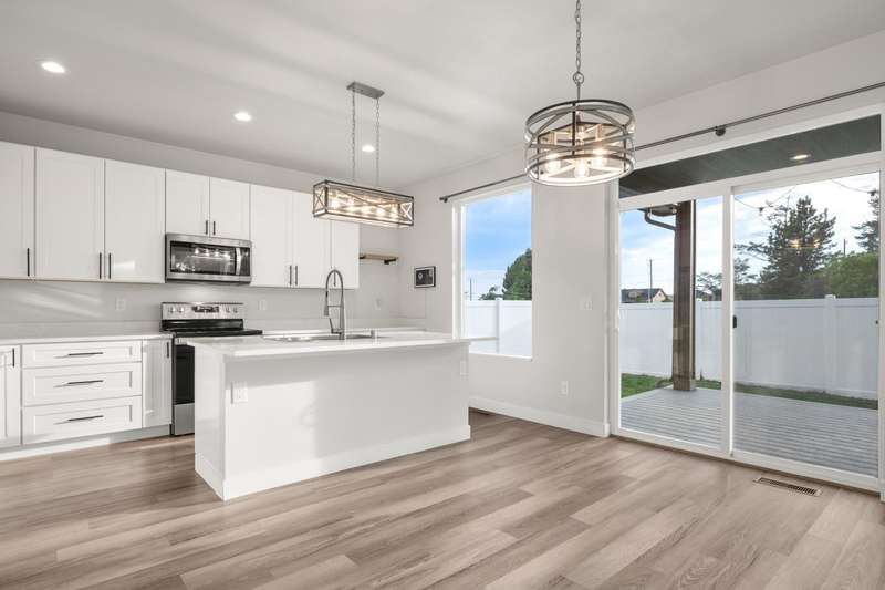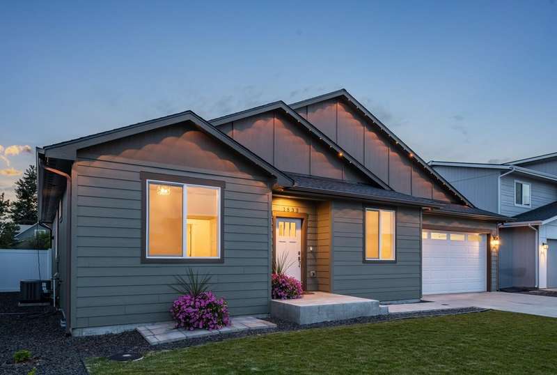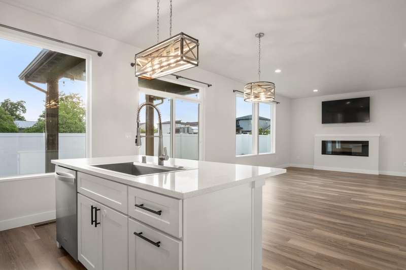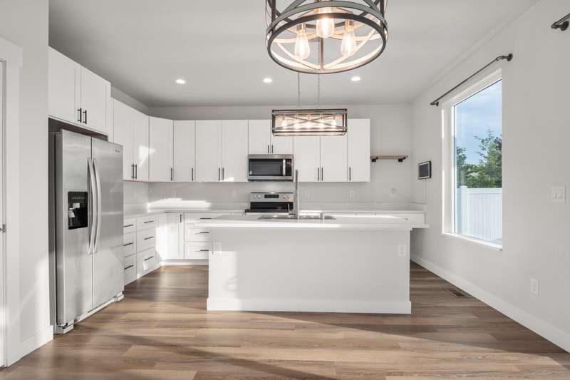 Better than new Five Mile Prairie one level living with gorgeous sunsets from the covered deck! Convenient low maintenance fenced yard but enough room for kids, animals or your dream garden! Fantastic open concept with modern fireplace, great daylight, beautiful wood grain LVP flooring throughout and rare four bedrooms on one floor. Perfect white quartz kitchen with stainless steel appliances, island with breakfast bar, pantry, desk area with Amazon Echo Show (TV/computer screen) on the wall for those who like to stay organized and a nice dining area to the relaxing deck. Large primary suite with quality finishes & nice walk-in closet. Oversized mud/laundry room with sink, hanging/drop zone & washer/dryer included. Nice upgrades: Tankless water heater, Ecobee Smart Thermostat that links to your phone, Govee exterior lights w/ color choices...cool, solar panel exterior string lights & second beverage refrigerator in the garage. Great Mead Schools & easy access to hiking, parks, dining, shopping, & hospitals.