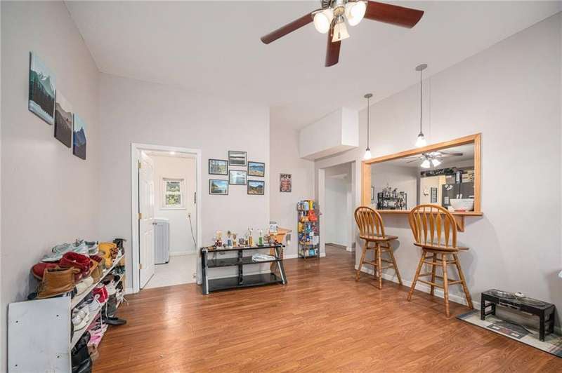 This spacious property offers the perfect blend of charm, functionality, and potential. From the moment you arrive, youre greeted by a large front yard and a mostly wraparound porchideal for morning coffee or evening sunsets.Inside, vaulted ceilings, wood floors, and updated carpet set the stage. To the right are two versatile rooms separated by a half wall, perfect for an office, playroom, or sitting area. Beyond is the expansive living room, offering plenty of space to relax or entertain.On the left, the dining room flows into a generous kitchen with a unique pass-through bar that opens to a bright additional room filled with natural light and access to both the front and back doors. This space also connects to the main-level laundry. A convenient half bath completes the first floor.Upstairs, the primary suite impresses with large windows, a walk-in closet, and a private bath. Two more bedroomsone oversizedplus a full hall bath complete this level.The lower level offers endless possibilities. With much of the framing and flooring already in place, its ready to be finished into your dream basement. Theres room for a recreation area, non-conforming bedroom, storage, and even a potential future bath.Outside, nearly three-quarters of an acre provides plenty of space for gardening, outdoor living, or play. Classic concrete steps add character and connect the backyard to the front of the property.With its generous square footage, flexible layout, and outdoor space, this home is full of opportunitiesready for you to make it your own.