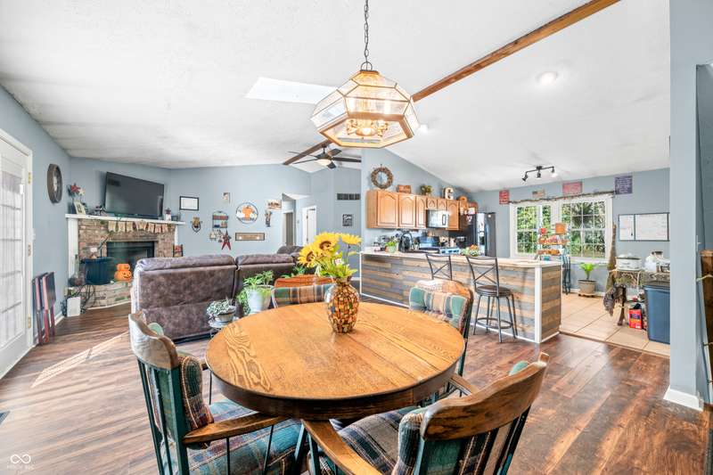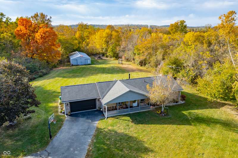 Beautiful country home on five acres with a black top driveway. The brick and cedar sided home has two bedrooms, three full baths, finished basement and a two car garage. Open concept with living room, dining room, and kitchen in one big space. The finished basement has two bonus rooms, a full bath along with a spacious game/rec room. Tons of storage in the Pole barn with four sliding doors and one access door. Sit on the front covered porch or back deck and enjoy the peace and quiet this home has to offer.
