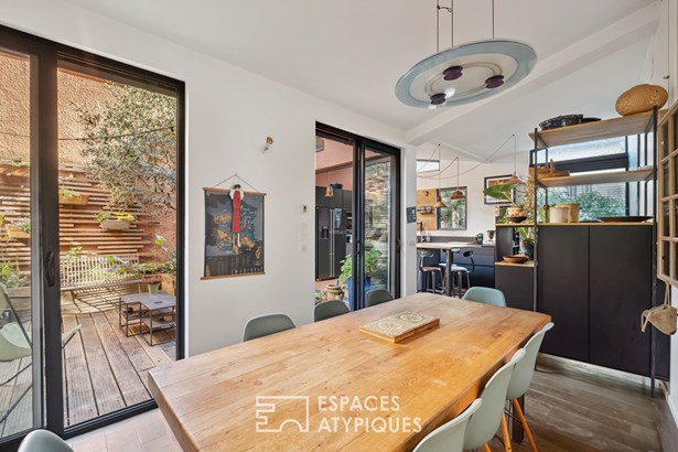 Located in Lyon 7th, this unexpected 218m2 townhouse has been completely renovated and benefits from a 20m2 patio. The large entrance with its numerous storage spaces and its office area, serves the two parts of this house. On the one hand, a 3-part living room takes place. It is organized around a 20m2 patio, in a quiet area, and consists of a lounge area with video projector, a dining room and a contemporary kitchen. On the other hand, there is a master suite including a large bedroom, a dressing room and a modern bathroom. On the first floor, two large bedrooms share a bathroom. On the top level, an open space with its storage serves the last two bedrooms of this house and the bathroom. An independent 28m2 studio with its 25m2 garden will be sold as an additional purchase. Previously rented for EUR685/month, it allows for additional income or a separate space for family or guests. The quality renovation, the proximity of the Saxe-Gambetta metro station, the layout around the quiet patio and the 5 bedrooms make this family home a rare property in the city center. Air conditioning. A cellar. A large storeroom. Possibility of rental parking nearby. Metro lines D and B 'Saxe-Gambetta' DPE: C / GES: C Property subject to the status of the co-ownership: 6 lots. Contact: Axel - 06 67 68 57 45
