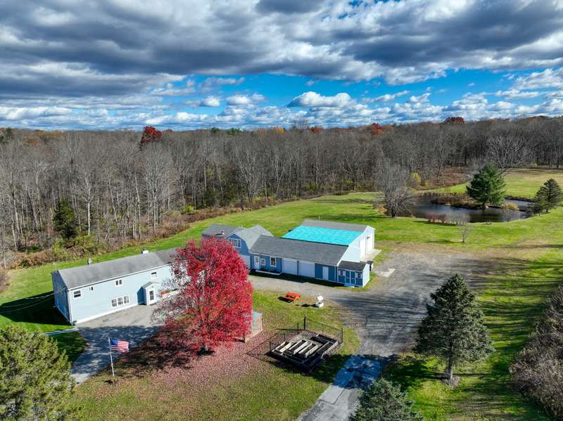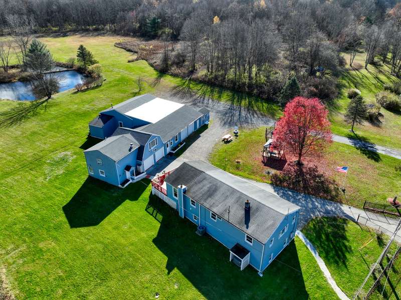 Beautiful 10-acre country property with unlimited potential. Updated 4 bedroom, 2 bath home with mother-daughter possibility. Additional 1 bedroom apartment over the garage can be rented out for extra income, or used as a guest house. Sub-dividable into 2 parcels. Build your dream home in the back with ultimate privacy. Second driveway is already laid out for back acreage. Pond with island is loaded with fish. Multiple garages, 2 are heated. Back garage has high ceiling, half bath, furnace, lift, compressor, and tall overhead doors. Several storage rooms plus a storage shed. Gazebo and fenced raised bed garden. Whole-house generator. Level land is perfect for horses or farming. Garage could be turned into stables. Abundant wildlife. Homesteading or solar farm potential. 17 minutes to Rhinebeck and CIA. Hiking, kayaking, hunting, skiing, and more are all within a short drive.