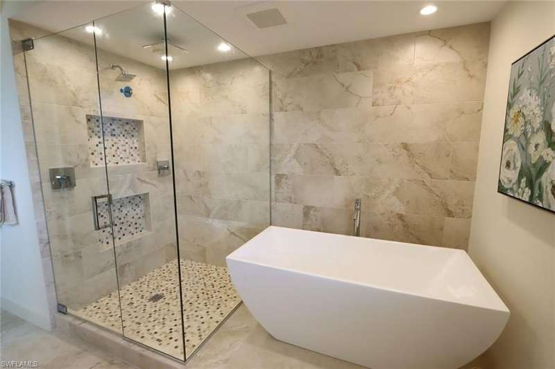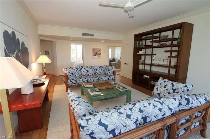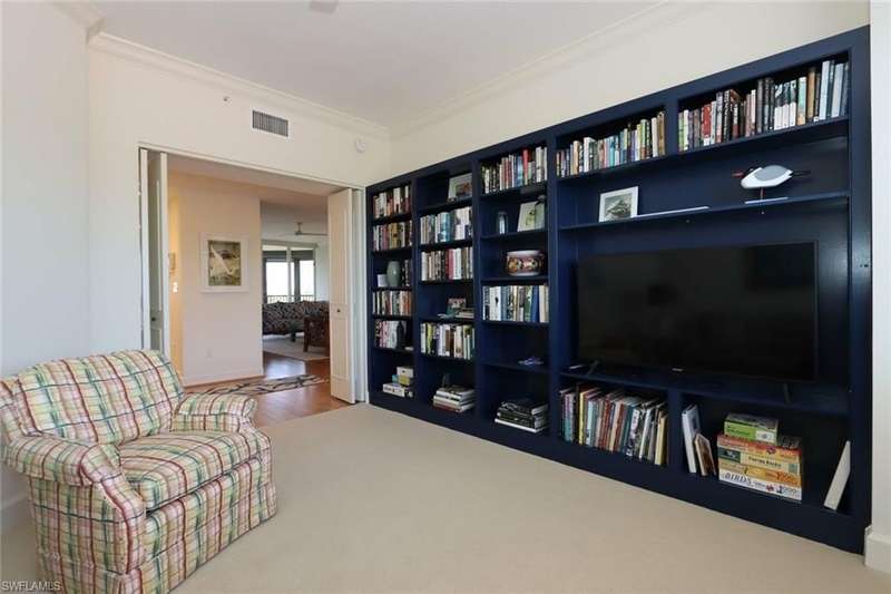 BOOKED for 2025 Season! Marquessa, an elegant building located within the gated community of Bay Colony. This 3 bedroom/3 bath, den residence overlooks the Pelican Bay preserve with long view. The Marquesa offers access to the tennis center, and private Beach Club at Bay Colony, offering fine and casual dining, as well as a beachside pool with lounge service and light fare. The living room is quite comfortable, offering two couches, two matching chairs, with easy access to the Lanai. The master suite has a king bed, flat screen TV, large walk-in closet, and private bath with a tub, separate shower and dual sinks. The Guest bedroom has queen-size beds, attached bath with shower, and private lanai. The 2nd guest suite has 2 twin beds, and private bath with a shower. The Den has a comfortable couch, TV, and small balcony. The kitchen has all white cabinetry, quartz counters and bar, and a round dining table and chairs. Enjoy the screened lanai with seating offering beautiful sunset views. Marquesa amenities include a heated pool/spa, BBQ, fitness and social rooms and a guest suite Access to all of the Bay Colony amenities - beach club, dining, tennis.